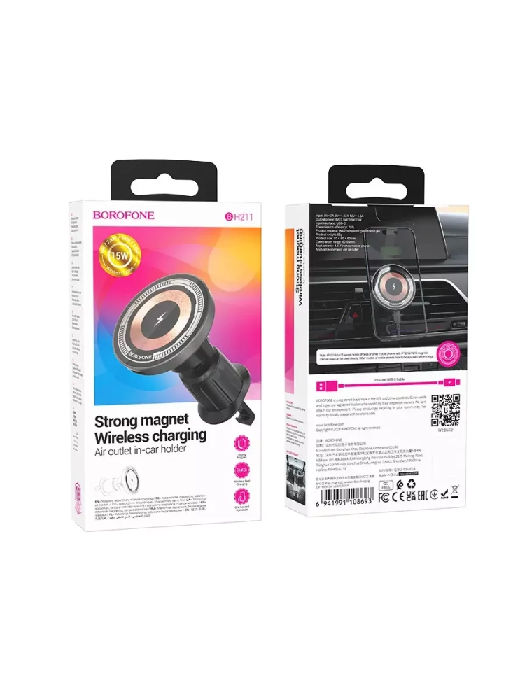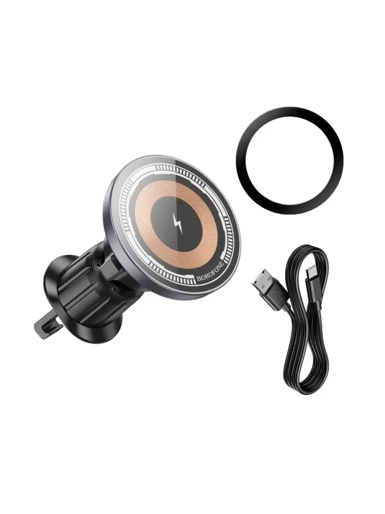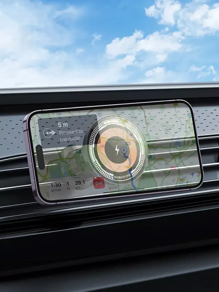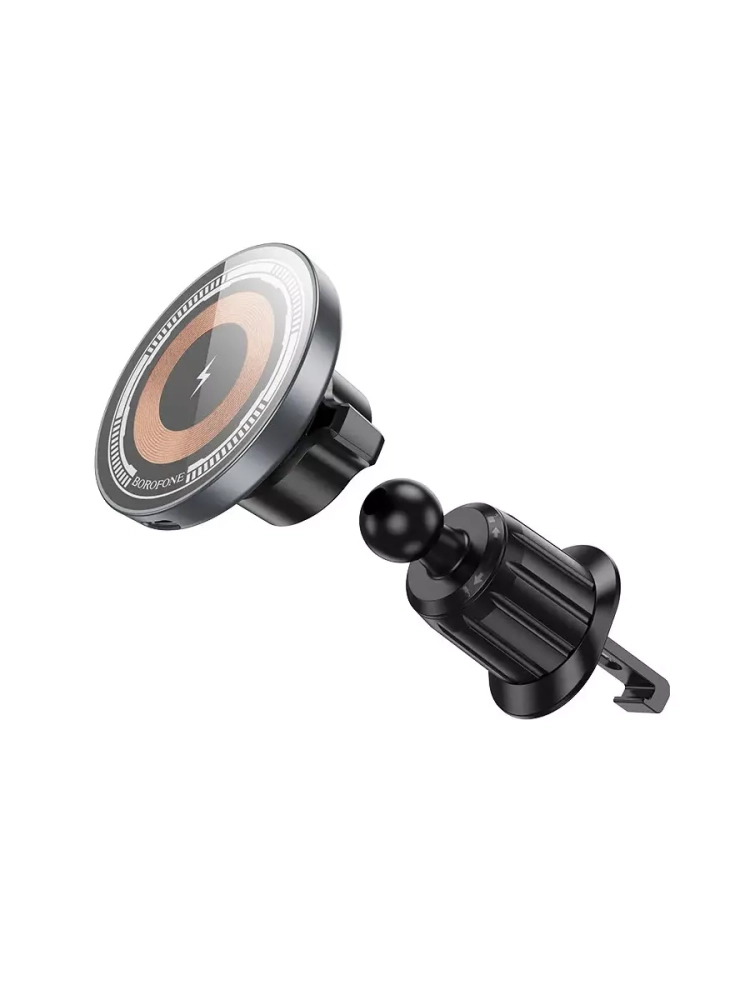 Беспроводное зарядное устройство BH212 от бренда BOROFONE предлагает множество полезных особенностей и функций, которые значительно облегчат использование вашего мобильного телефона в автомобиле. Прежде всего, стоит отметить, что этот держатель оснащен магнитным креплением, использующим технологию MagSafe. Это гарантирует надежную и стабильную фиксацию вашего устройства.