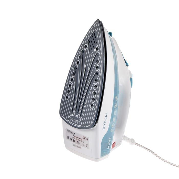 Утюг DELTA LUX DL-710, 2400 Вт, керамическая подошва, 25 г/мин, 320 мл, бело-голубой