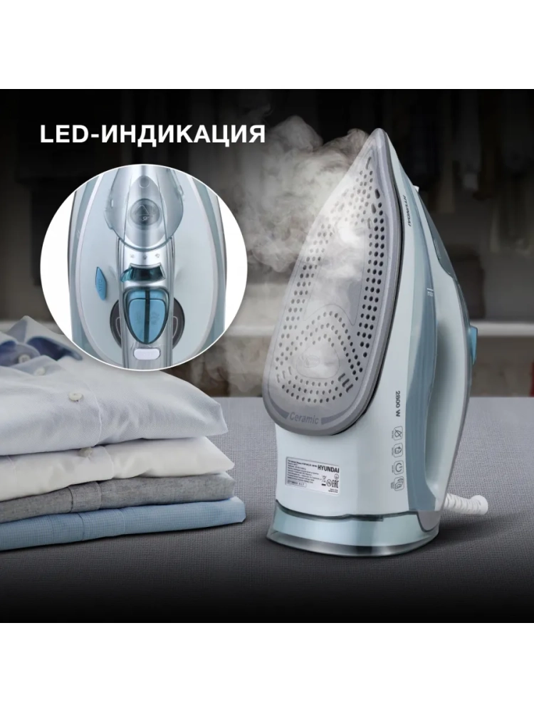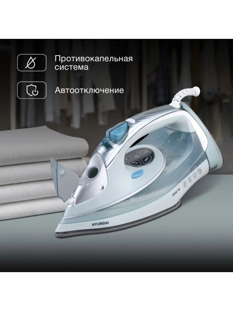Паровой утюг HYUNDAI с керамическим покрытием и мощностью 2800 Вт обеспечивает быстрое и легкое глажение даже самых плотных тканей. Благодаря объему резервуара 400 мл и постоянной подаче пара (35 г/мин) вы забудете о складках на одежде.
