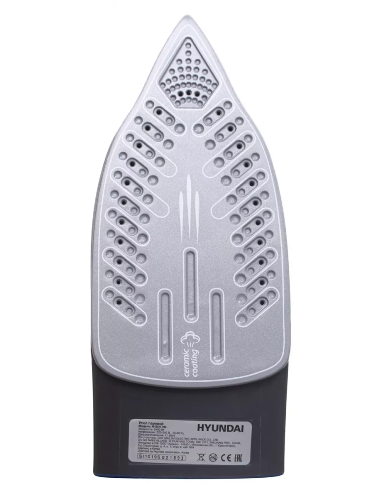 Утюг Hyundai H-SI01789 серый/темно-синий, мощность 2400Вт, подошва утюга керамическая, емкость для воды 300мл, длина шнура 2м, Мерный стакан