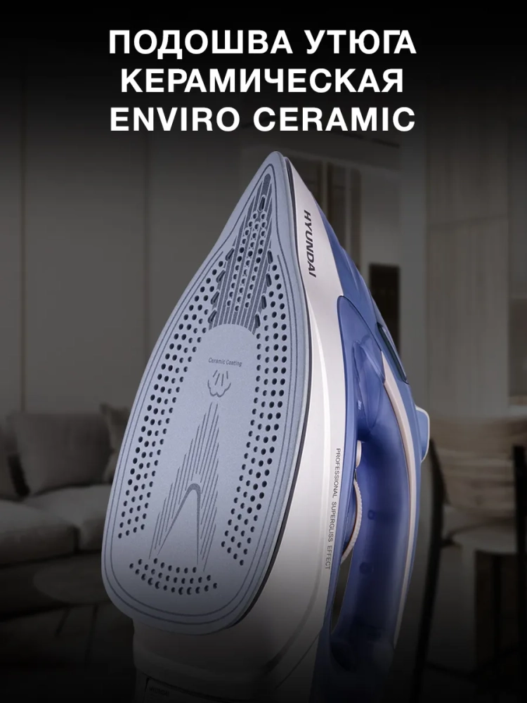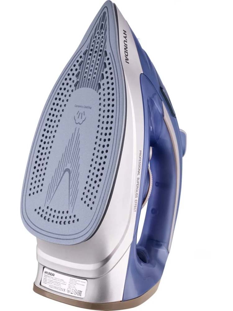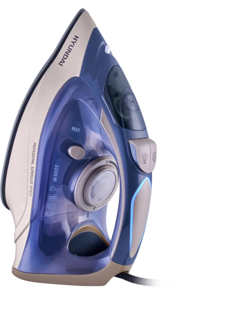 Утюг Hyundai H-SI02510 темно-синий/розовое золото, мощность 3200Вт, подошва утюга керамическая Enviro Ceramic, паровой удар 250г, емкость для воды 350мл, длина шнура 3м. Самоочистка от накипи. Автоотключение.