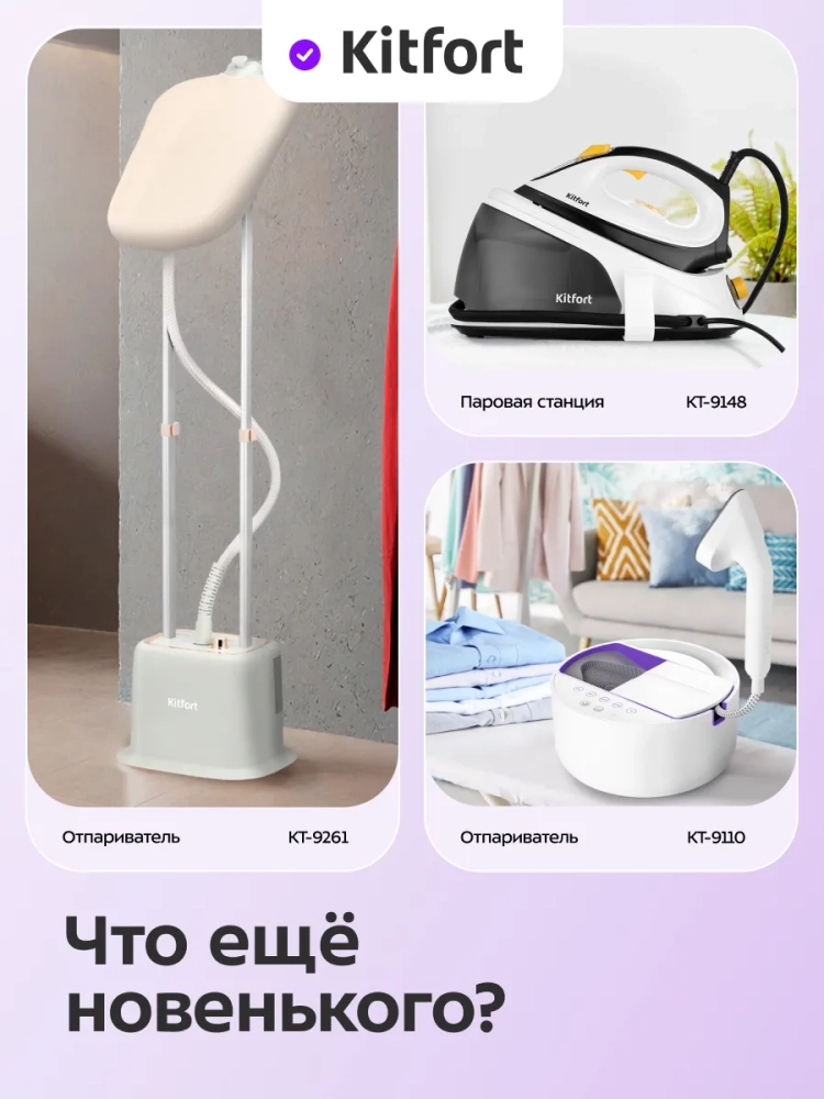 Купить утюг Kitfort — значит выбрать качество и инновации. Этот утюг с антипригарным покрытием и функцией автоотключения станет вашим надежным помощником в уходе за одеждой. Паровые утюги Kitfort — это сочетание передовых технологий и удобства использования, что делает их лучшими в своем классе. Выбирая утюг Kitfort, вы получаете надежное устройство для эффективной и безопасной глажки.