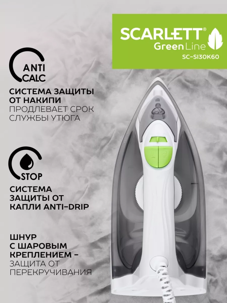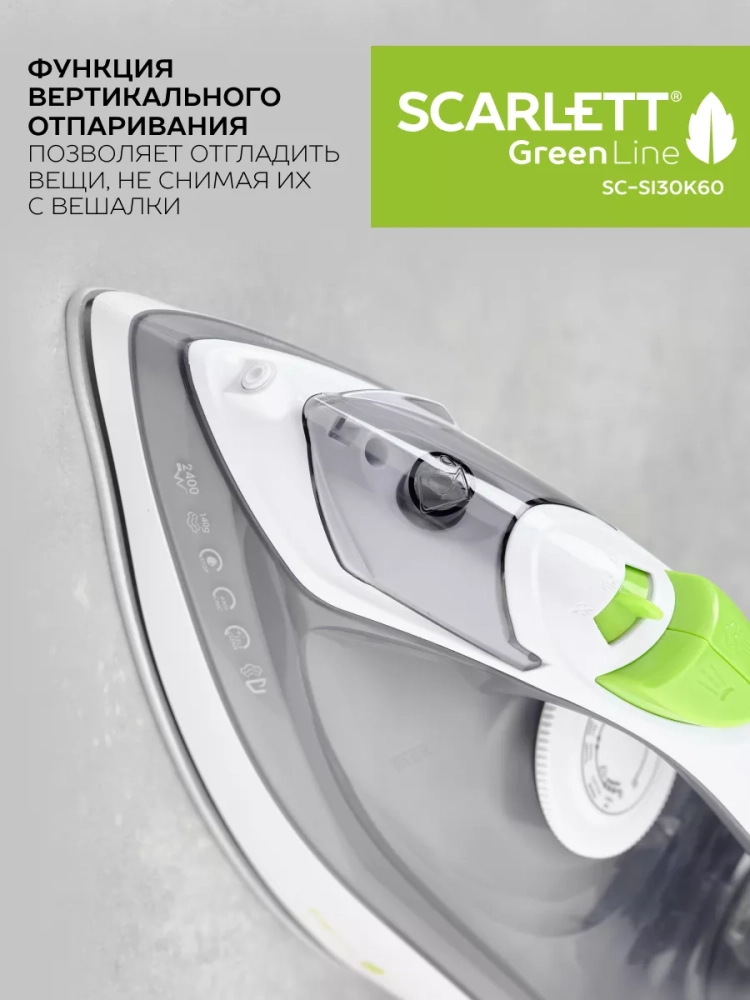 Утюг Scarlett SC-SI30K60 с пластиковым корпусом белого цвета снабжен идеально гладкой подошвой с керамическим покрытием KeramoPro, которая обеспечивает отличное скольжение и бережное отношение ко всем видам тканей. Прибор мощностью 2400 Вт легко скользит по поверхности любой ткани и может эффективно отпаривать вещи, постоянно выдавая до 35 граммов пара в минуту в режиме глажения с паром. В режиме парового удара создает 140 гр пара в минуту, расправляя даже самые непослушные складки. Есть функция вертикального отпаривания: это даёт возможность приводить в порядок пальто или костюмы даже на вешалке. Функция анти-капля позволяет избежать появления случайных капель на одежде. Система защиты от накипи совместно с функцией самоочистки существенно продлит срок службы утюга и убережет его от накипи. Оптимальный вес способствует разглаживанию неровностей без излишней нагрузки на руки. Удобный шнур длиной 180 мм - пластичный, гибкий, оснащен шаровым креплением, защищающим от перекручивания.