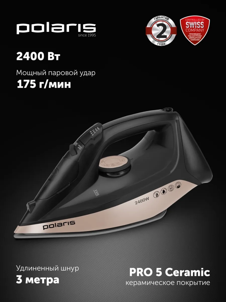 Ультрастойкое керамическое покрытие PRO 5 Ceramic обеспечивает равномерное распределение тепла и долгий срок службы утюга.