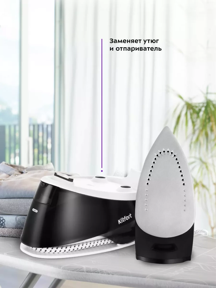 Паровая станция Kitfort KT-9142 — это современное устройство для глажки, заменяющее утюг и отпариватель. Прибор состоит из утюга для глажки и подставки для утюга с несъемным резервуаром для воды. Паровая станция позволяет гладить быстрее и эффективнее, чем утюг. Например, если на глажку рубашки и брюк обычным утюгом уходит около 15 минут, то при помощи паровой станции вы справитесь за 5 минут. Благодаря силе пара, создаваемого с помощью паровой станции, можно эффективно гладить постельное белье и полотенца, сложенные в несколько слоев.