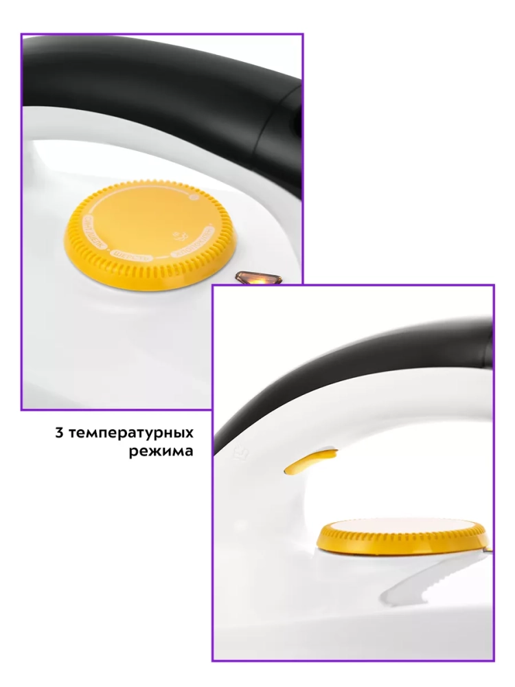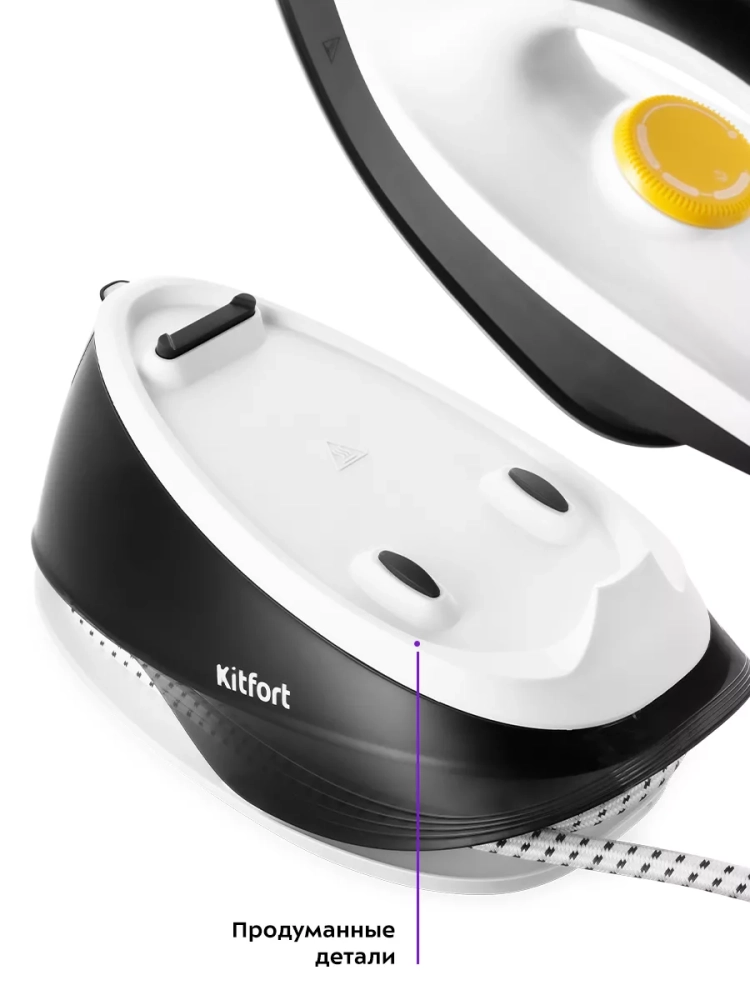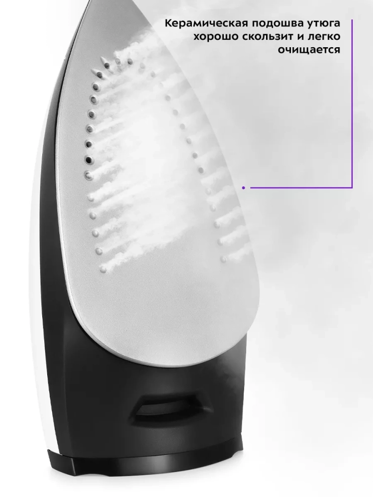 Керамическая подошва утюга хорошо скользит и легко очищается. Такой утюг не сделает затяжек на одежде и лишних складок. Паровую станцию КТ-9142 можно использовать для вертикального отпаривания. Вы можете отпарить занавески и портьеры (для этого их не обязательно снимать), обивку мягкой мебели, матрасы. Также вы можете отпаривать одежду, висящую на плечиках, сушилке для белья или веревке. При этом вы не только разгладите складки, но и освежите вещи, а также продезинфицируете их, так как горячий пар убивает пылевых клещей и другие микроорганизмы.