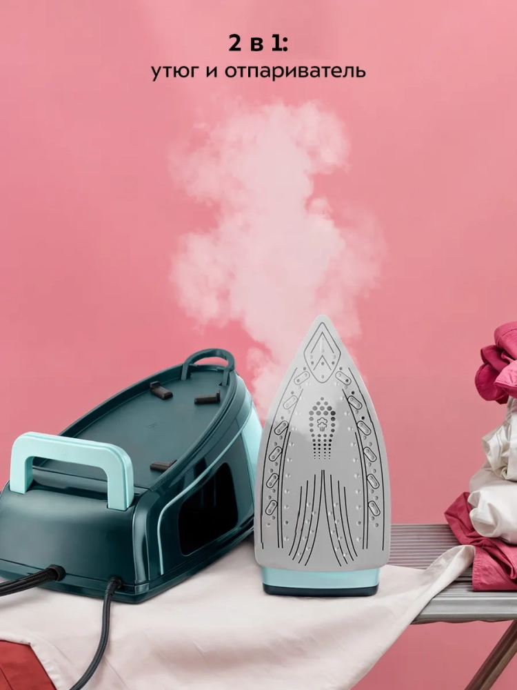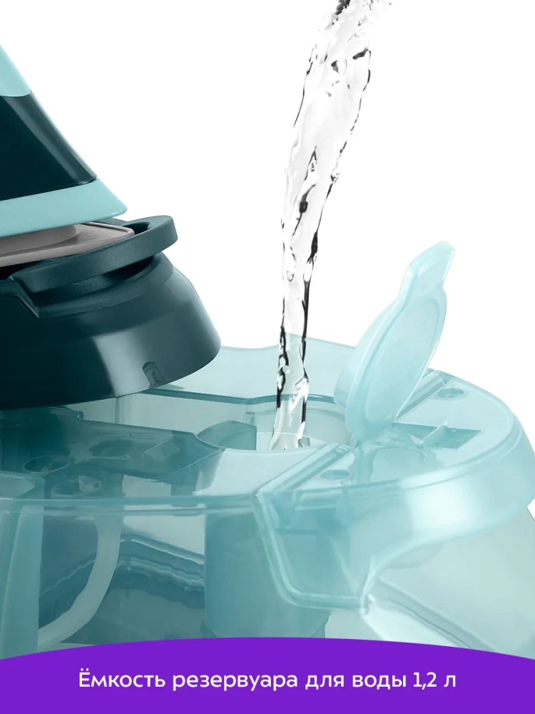 Отличительная особенность всех паровых станций — это большой резервуар для воды: емкость съемного резервуара в паровой станции КТ-9307 составляет 1,2 л.