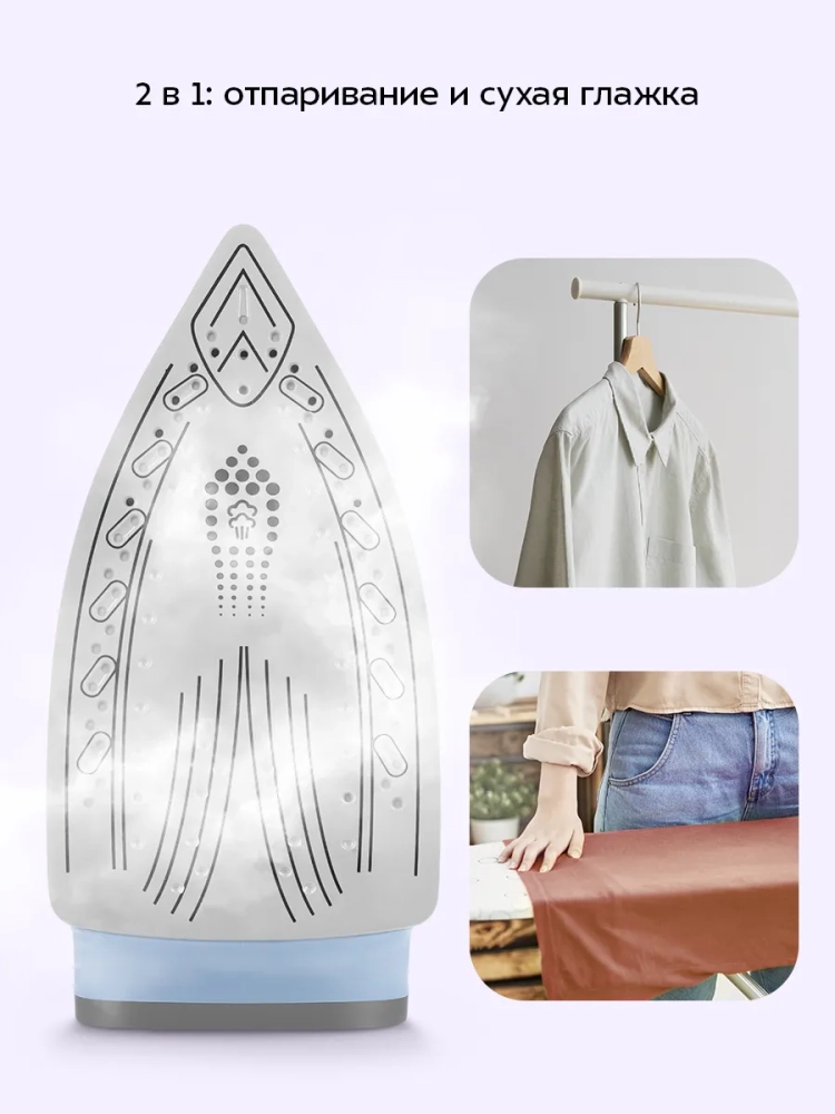 Отличительная особенность всех паровых станций — это большой резервуар для воды: емкость съемного резервуара в паровой станции КТ-9307 составляет 1,1 л.
