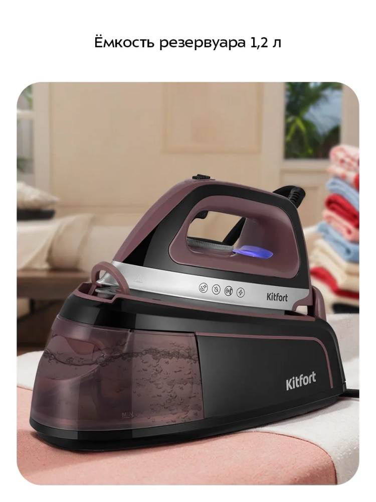 Отличительная особенность всех паровых станций — это большой резервуар для воды: емкость резервуара в паровой станции КТ-9309 составляет 1,2 л.