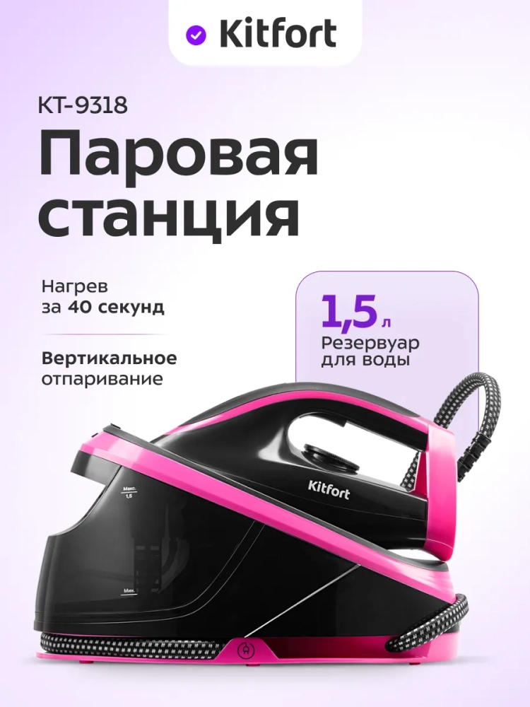 Паровая станция Kitfort KT-9318 — это современное устройство для глажки, заменяющее утюг и отпариватель. Прибор состоит из утюга для глажки и подставки для утюга со съемным резервуаром для воды. Паровая станция позволяет гладить быстрее и эффективнее, чем утюг. Например, если на глажку рубашки и брюк обычным утюгом уходит около 15 минут, то при помощи паровой станции вы справитесь за 5 минут. Благодаря силе пара, создаваемого с помощью паровой станции, можно эффективно гладить постельное белье и полотенца, сложенные в несколько слоев.