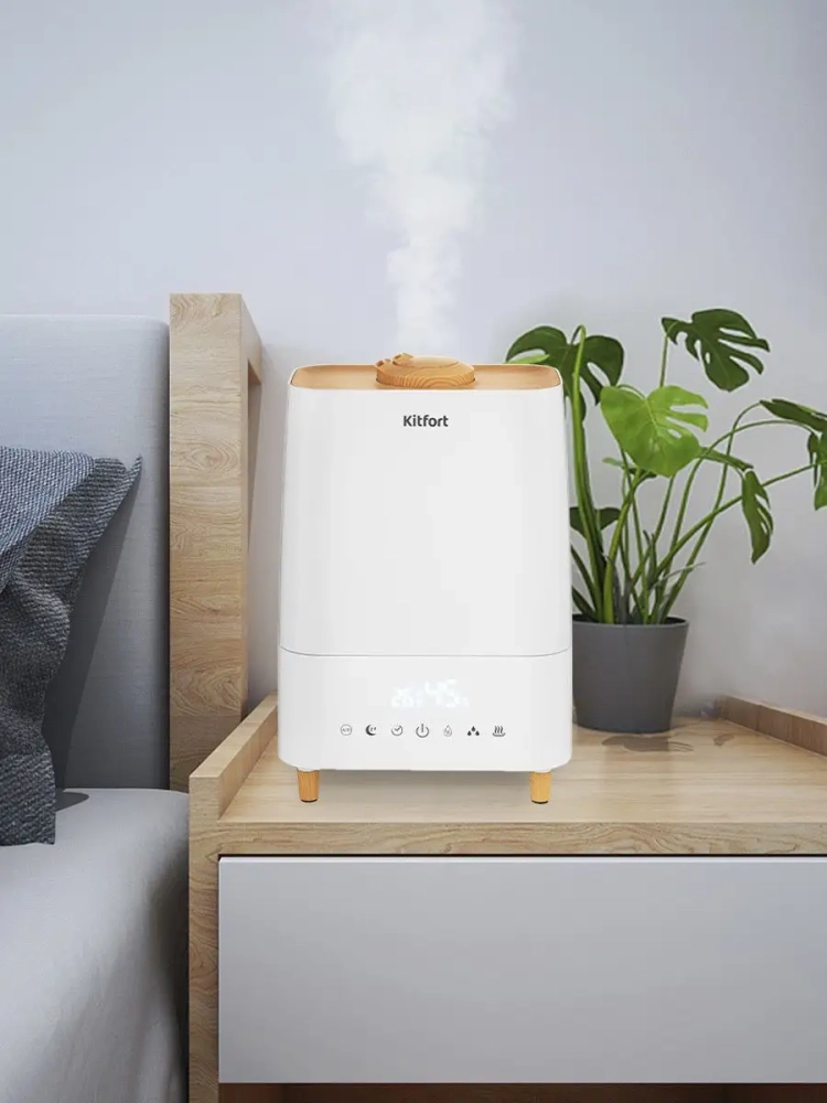 Ультразвуковой увлажнитель воздуха Kitfort KT-2811 увлажняет воздух в помещении, создавая хороший микроклимат для проживания людей. Он оборудован встроенным гигрометром, поэтому может поддерживать заданный вами уровень влажности. Резервуар у данной модели съемный, с ручкой. В резервуаре увлажнителя расположен деминерализационный фильтр, благодаря которому вода очищается от примесей и становится мягче за счет снижения в ней концентрации минеральных веществ. С помощью кнопок на передней панели можно установить целевую влажность воздуха 40-80 % с шагом 5, время таймера - от 1 до 12 часов и интенсивность тумана 1, 2 или 3. Функция ароматизации создает в доме приятную атмосферу. Некоторые запахи не только расслабляют, но и оказывают тонизирующее воздействие. КТ-2811 простой в эксплуатации и обслуживании, отличается высокой надежностью в работе. Может использоваться в помещениях и квартирах, площадь которых не превышает 15-30 кв.м.