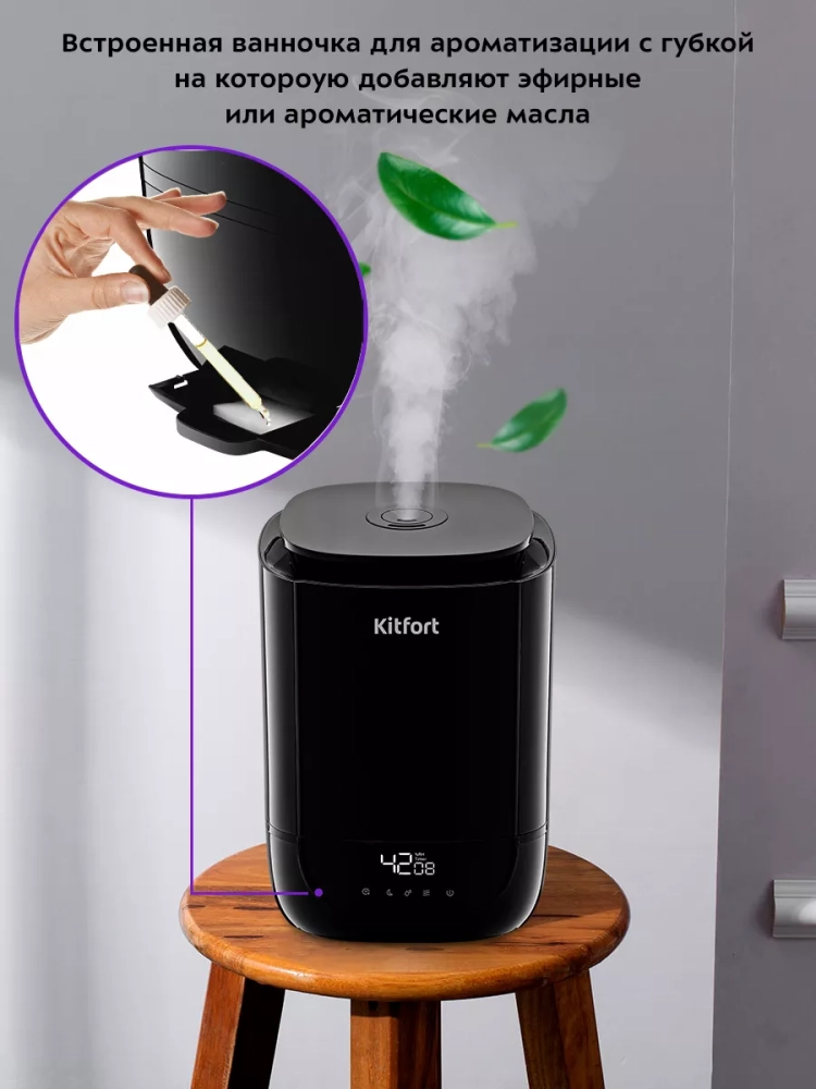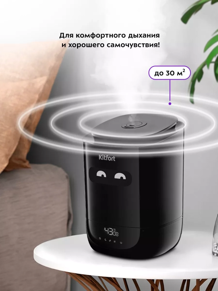 Ультразвуковой увлажнитель воздуха Kitfort KT-2877 увлажняет воздух в помещении, создавая хороший микроклимат для проживания людей. Увлажнитель Китфорт КТ-2877 простой в эксплуатации и обслуживании, отличается высокой надежностью работы. Может использоваться в помещениях, площадь которых не превышает 30 м².