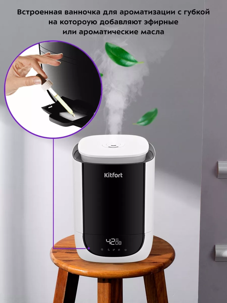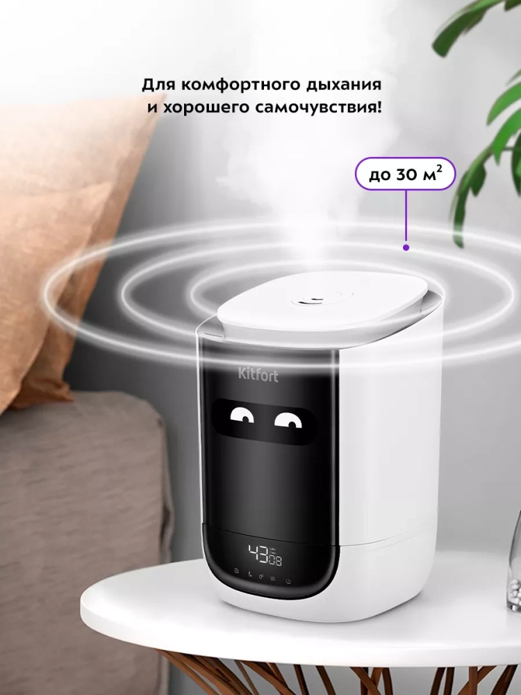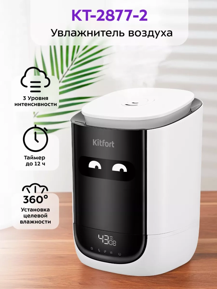 Ультразвуковой увлажнитель воздуха Kitfort KT-2877 увлажняет воздух в помещении, создавая хороший микроклимат для проживания людей. Увлажнитель Китфорт КТ-2877 простой в эксплуатации и обслуживании, отличается высокой надежностью работы. Может использоваться в помещениях, площадь которых не превышает 30 м².