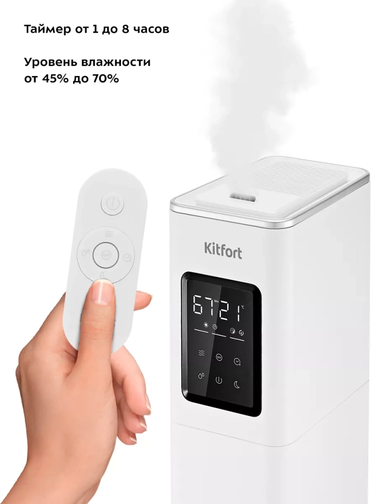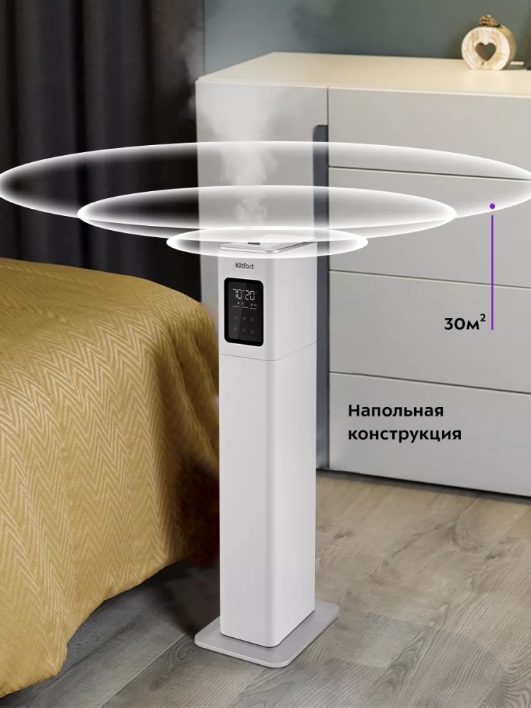Ультразвуковой увлажнитель воздуха Kitfort KT-2880 увлажняет воздух в помещении, создавая хороший микроклимат для проживания людей. Увлажнитель Китфорт КТ-2880 простой в эксплуатации и обслуживании, отличается высокой надежностью работы. Может использоваться в помещениях, площадь которых не превышает 30 м². Напольная конструкция обеспечивает удобство размещения устройства в помещении. Благодаря большому объему резервуара для воды увлажнитель может работать непрерывно 40 часов на максимальной мощности.