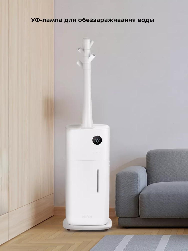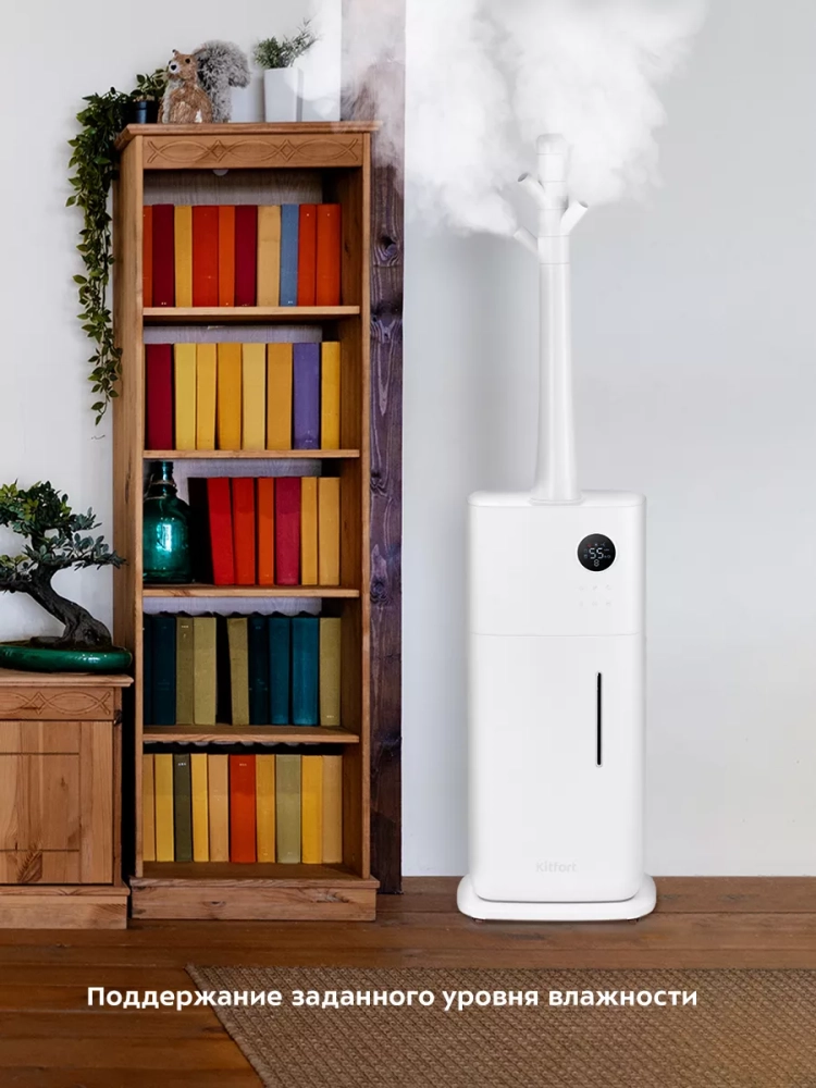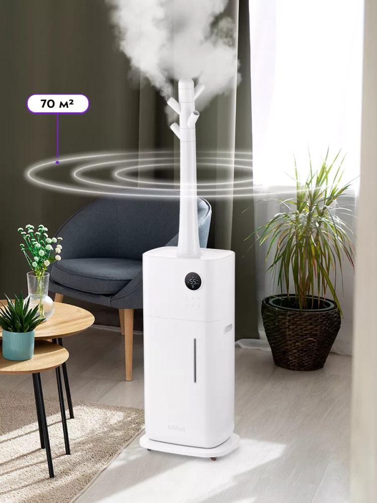 Ультразвуковой увлажнитель воздуха Kitfort KT-2882 увлажняет воздух в помещении, создавая хороший микроклимат для проживания людей. Увлажнитель Китфорт КТ-2882 простой в эксплуатации и обслуживании, отличается высокой надежностью работы и наличием двух излучателей, благодаря которым увлажнитель может создавать вдвое больше тумана, поэтому эффективность увлажнения возрастает. Может использоваться в помещениях, площадь которых не превышает 70 м². Напольная конструкция обеспечивает удобство размещения устройства в помещении.