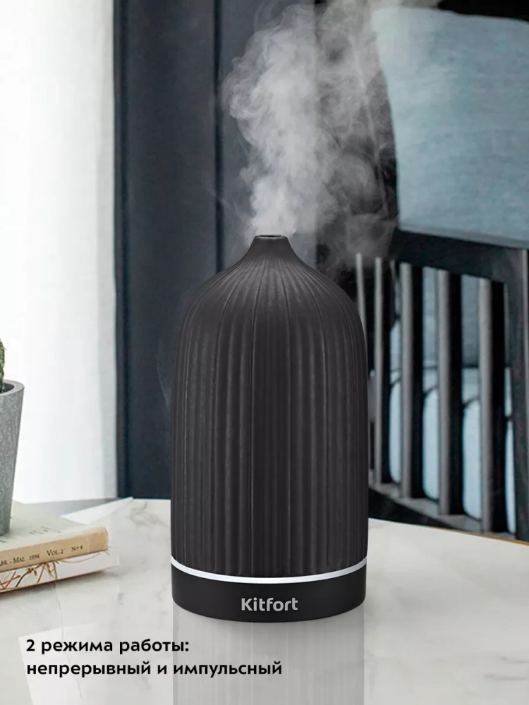 Увлажнитель-ароматизатор воздуха Kitfort КТ-2893 — компактный прибор, который создаст благоприятный микроклимат рядом с вами. Добавьте в резервуар для воды несколько капель эфирного масла, чтобы во время работы увлажнителя ароматическое вещество испарялось и вместе с туманом выдувалось наружу потоком воздуха, создавая вокруг приятный и ненавязчивый аромат. Устройство будет увлажнять воздух вокруг области его размещения, поэтому можно комфортно находиться на рабочем месте, крепко спать или заниматься любыми другими делами, пока рядом с вами находится увлажнитель воздуха.
