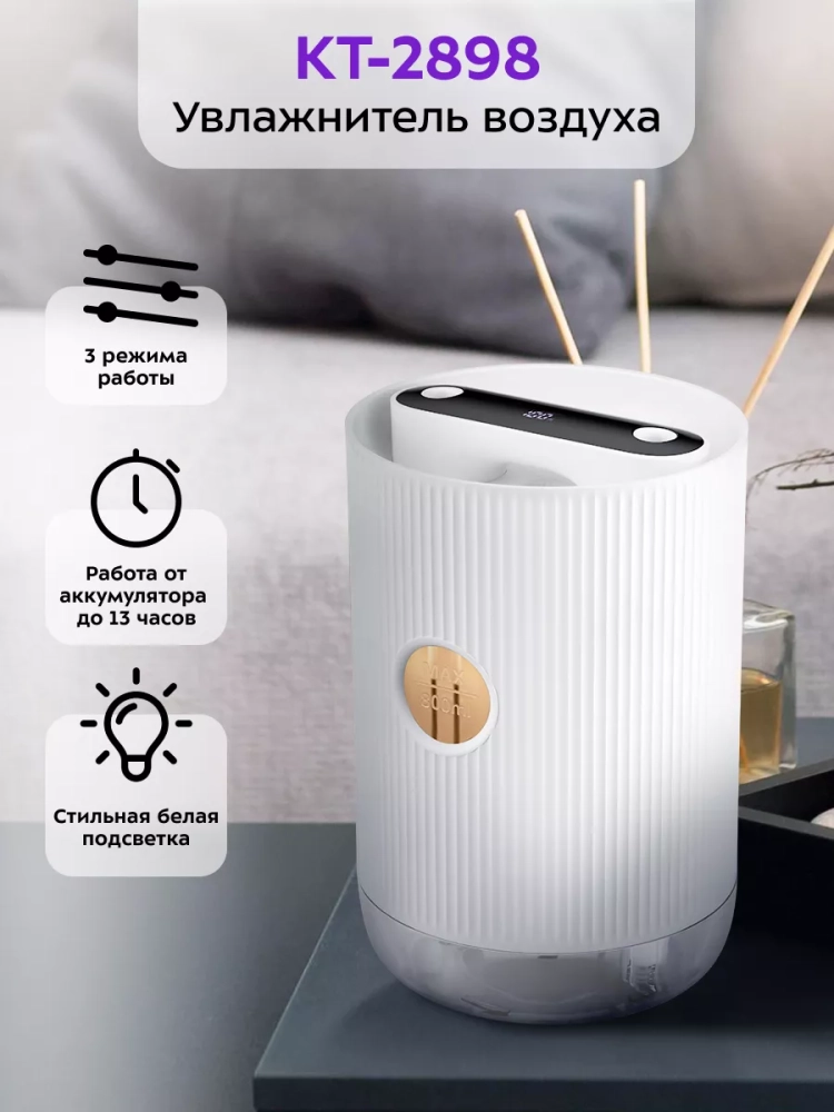 КТ-2898 является ультразвуковым увлажнителем, который считается наиболее эффективным из существующих увлажнителей воздуха.