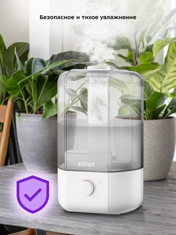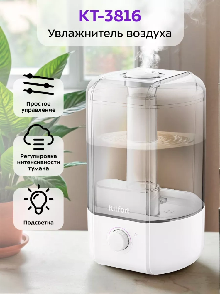 Ультразвуковой увлажнитель воздуха Kitfort KT-3816 увлажняет воздух в помещении, создавая хороший микроклимат для проживания людей. Увлажнитель КТ-3816 простой в эксплуатации и обслуживании, отличается высокой надежностью работы. Может использоваться в помещениях, площадь которых не превышает 30 м².
