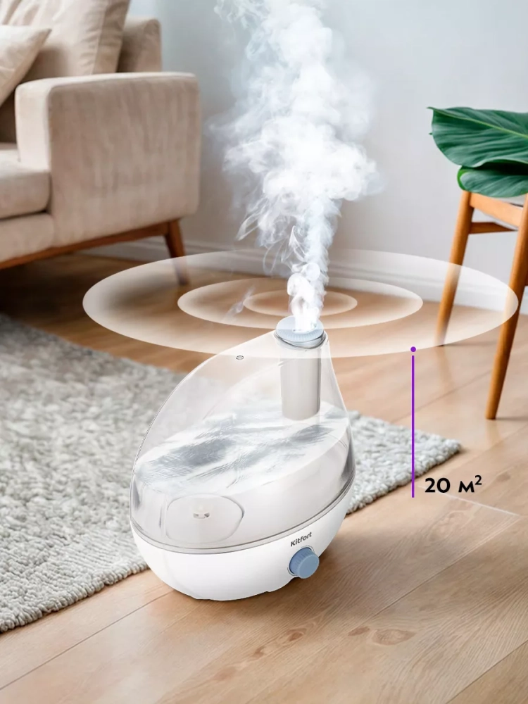 Ультразвуковой увлажнитель воздуха Kitfort KT-3819 увлажняет воздух в помещении, создавая хороший микроклимат для проживания людей.