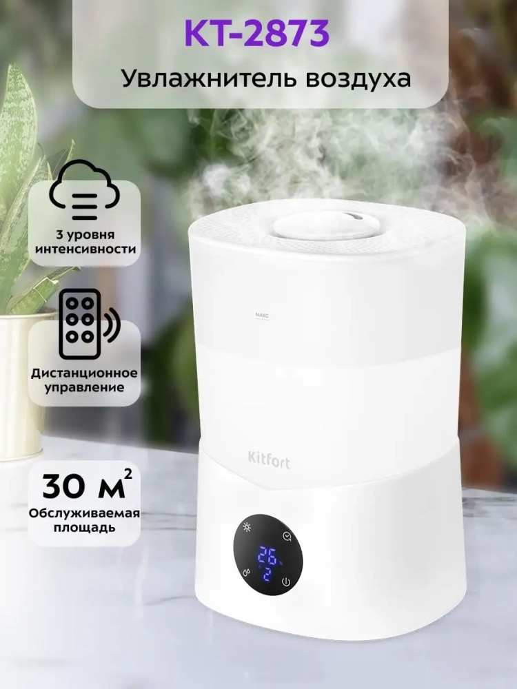 Ультразвуковой увлажнитель воздуха Kitfort KT-2873 увлажняет воздух в помещении, создавая хороший микроклимат для проживания людей.