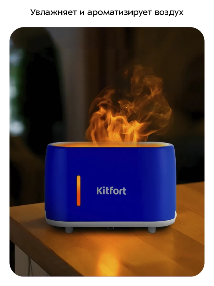 Благодаря подсветке и туману увлажнитель-ароматизатор во время работы создает эффект пламени и напоминает горящий камин. Прибор также можно использовать как ночник, не включая подачу тумана.