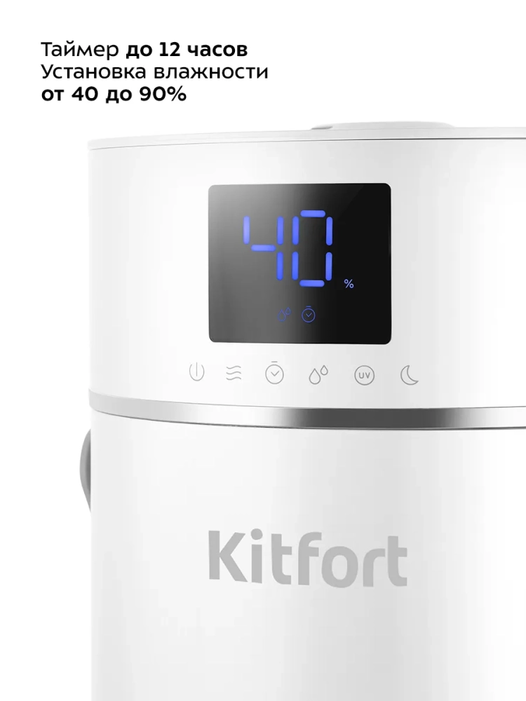 Таймер работы увлажнителя: 1–12 ч с шагом 1 ч.