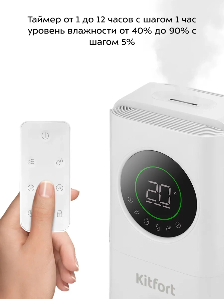 Таймер работы увлажнителя: 1–12 ч с шагом 1 ч.