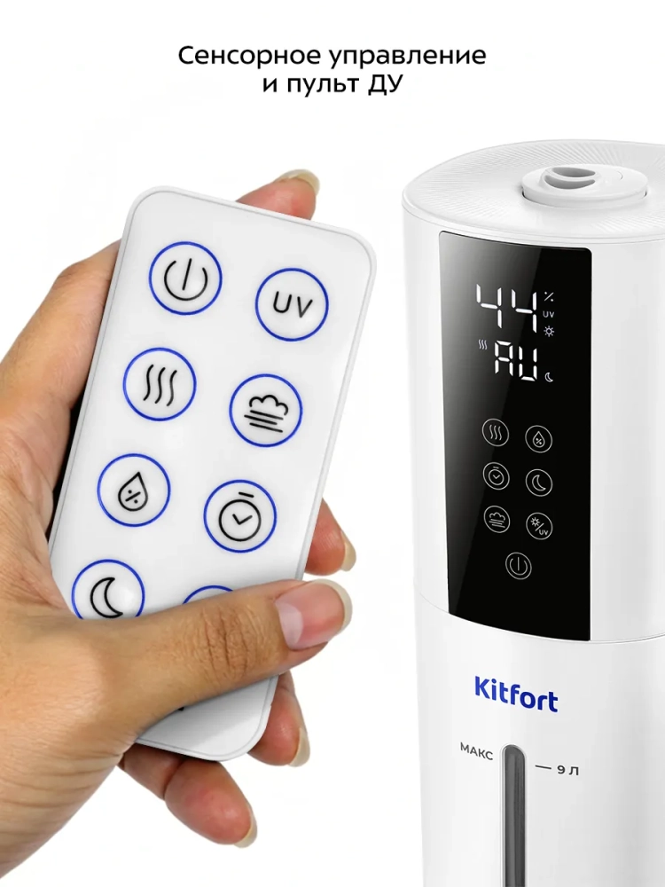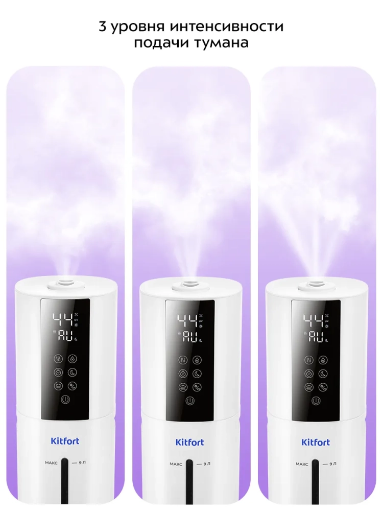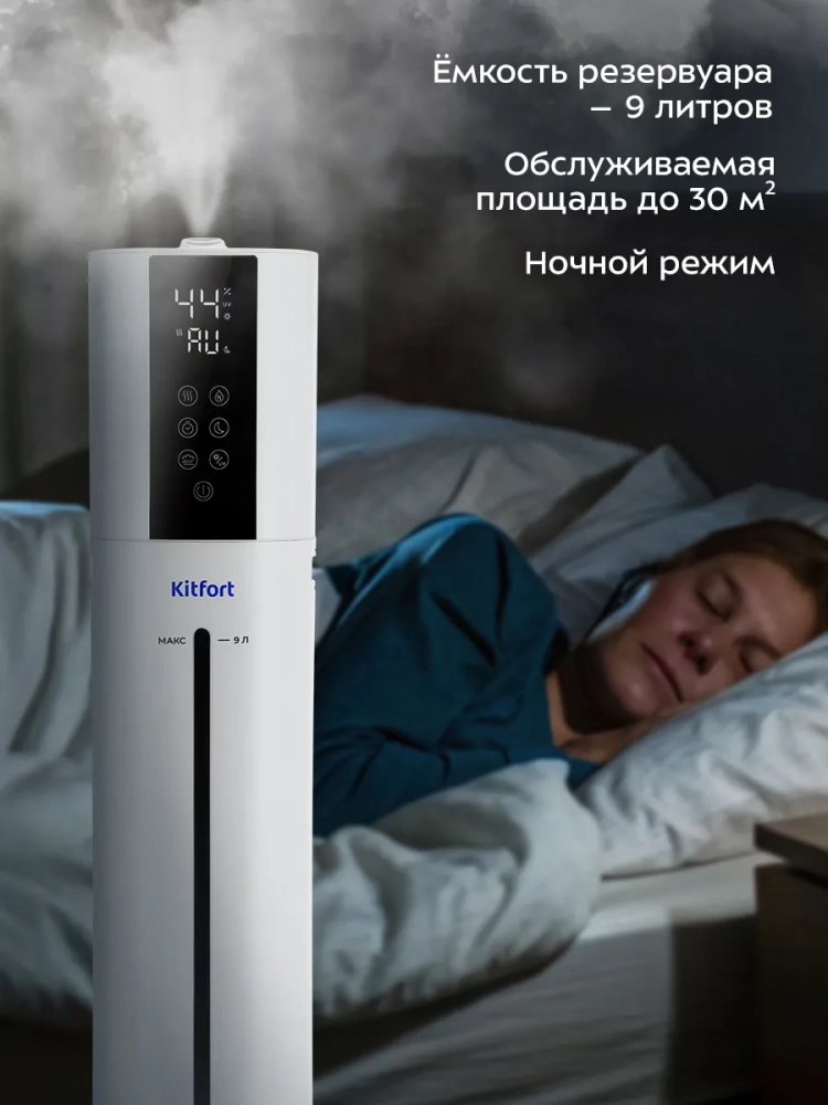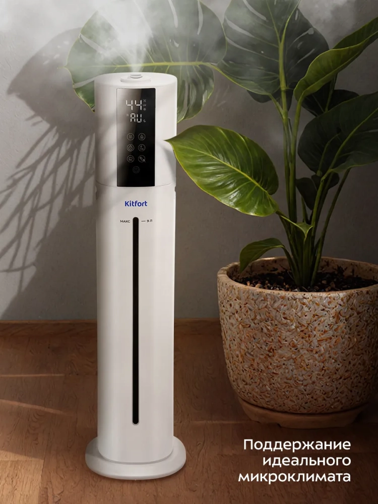 Ультразвуковой увлажнитель воздуха Kitfort KT-3858 увлажняет воздух в помещении, создавая хороший микроклимат для проживания людей. Увлажнитель КТ-3858 простой в эксплуатации и обслуживании, отличается высокой надежностью работы. Идеальный подарок на любой случай: на Новый год, 23 февраля, 8 марта, день рождения, свадьбу или юбилей! Может использоваться в помещениях, площадь которых не превышает 30 м². Напольная конструкция обеспечивает удобство размещения устройства в помещении. Благодаря большому объему резервуара для воды увлажнитель может работать непрерывно 22 часа на максимальной мощности.