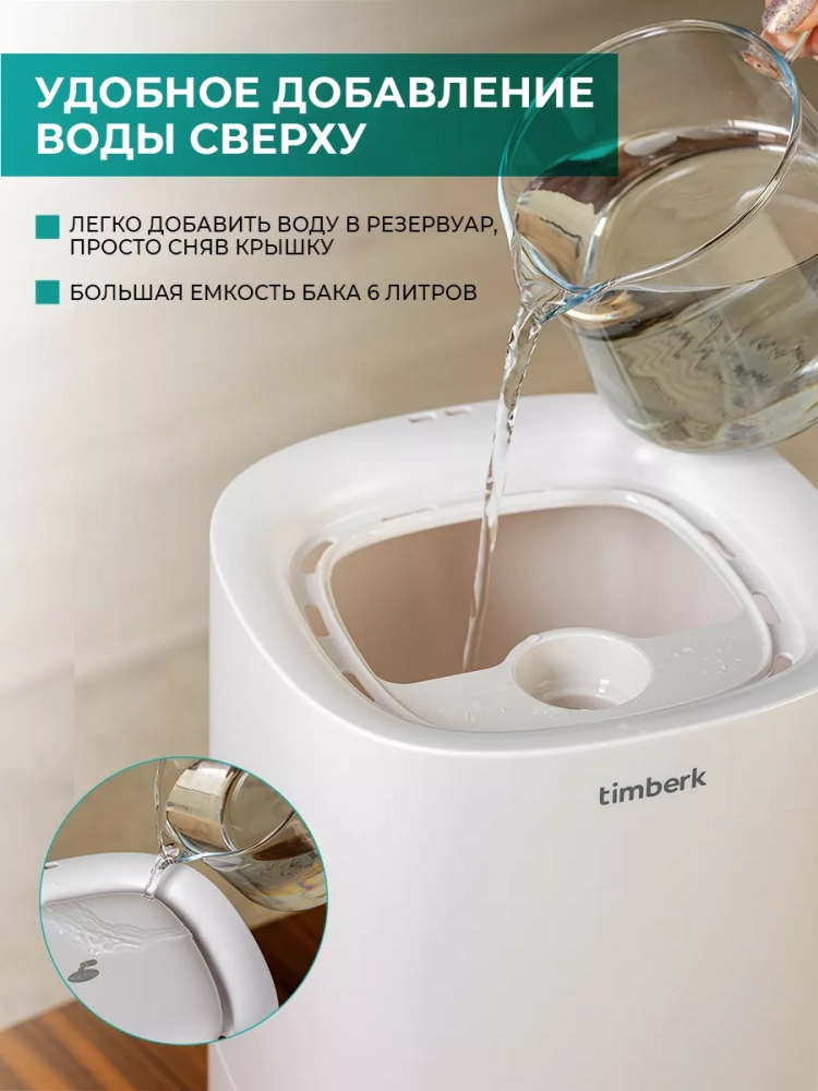 Сенсорное электронное управление. LED - Дисплей. Удобное добавление воды сверху. Производительность – 350 мл/ч - позволяет быстро достичь оптимального уровня влажности. Большая емкость бака - 6 литров. Аромакапсула для насыщения кислорода фитонцидами, подавляющими рост и развитие бактерий. Гигростат – регулировка уровня влажности окружающего воздуха (от 45% до 80%). Ночной режим с уменьшением яркости дисплея. Таймер на отключение от 1 до 12 часов. Продолжительность работы при максимальной производительности без долива воды - до 18 часов. Три скорости подачи пара. Автоматическое отключение при отсутствии воды. Мощность прибора – 23 Вт. Верхний залив воды. Гигростат. Аромакапсула.