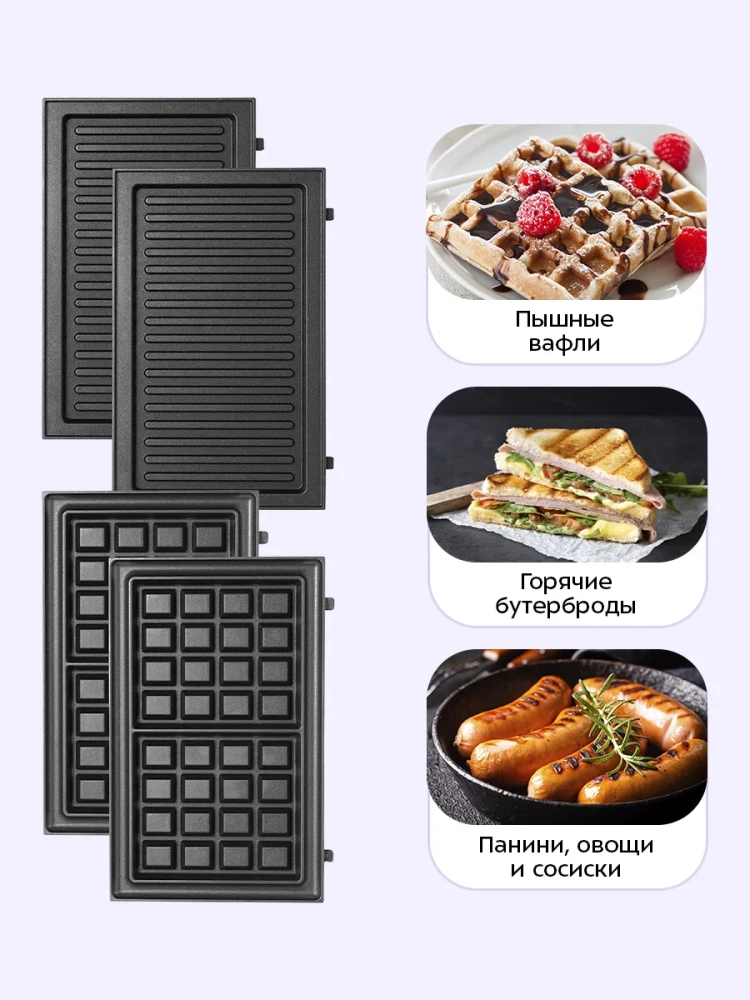 С помощью этой бытовой техники вы сможете приготовить вафли с идеальной консистенцией и хрустящей корочкой. В комплект входят съемные панели для выпечки, что позволяет легко менять режим работы и готовить разнообразные угощения. Бутербродница-сендвичница также подходит для жарки и приготовления домашних сэндвичей. Пластиковая панель управления обеспечивает удобство в использовании, а ручная работа с прибором становится простой и приятной.