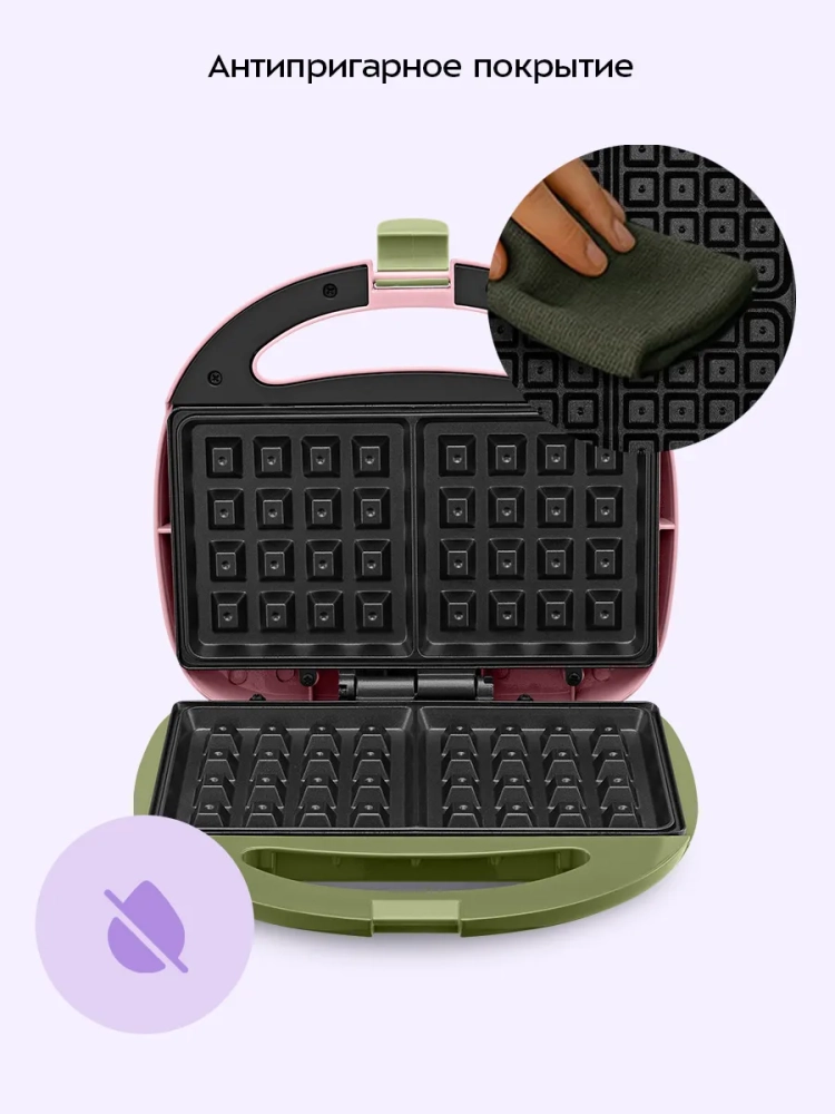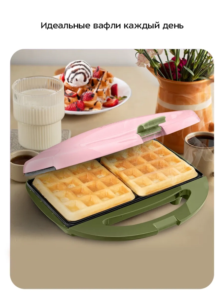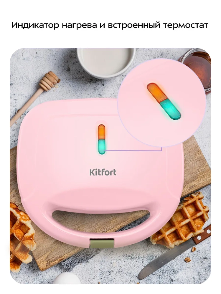 Вафельница для бельгийских вафель КТ-3657 - это идеальное решение для любителей домашней выпечки. С помощью этой электро вафельницы вы сможете приготовить две аппетитные бельгийские вафли одновременно. Антипригарное покрытие панелей предотвращает прилипание теста, что позволяет готовить с минимальным количеством масла и облегчает чистку устройства после использования. Вафельница оснащена индикаторами питания и нагрева, а также термостатом, который поддерживает оптимальную температуру панелей во время приготовления. Эта техника для кухни имеет фиксатор крышки, что обеспечивает удобство хранения и транспортировки. Работает от сети с напряжением ~220–240 В и частотой 50/60 Гц, мощность составляет 750 Вт. Длина шнура составляет 0,7 м, что делает её удобной в использовании на кухне любого размера. Размеры панели составляют 216 х 120 мм, а само устройство имеет габариты 235 х 210 х 77 мм. Это компактная электровафельница легко впишется в интерьер любой кухни благодаря своему современному дизайну. Вафельница Kitfort КТ-3657 относится к классу защиты I от поражения электрическим током, обеспечивая безопасность при эксплуатации. Эта техника станет незаменимым помощником на вашей кухне благодаря своей функциональности и простоте использования. Электровафельница идеально подходит как для повседневного использования дома, так и для особых случаев или праздников. Она поможет вам быстро приготовить вкусные венские вафли без лишних усилий.