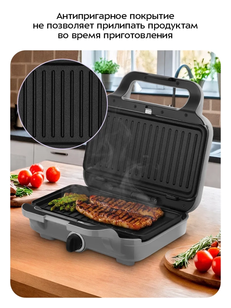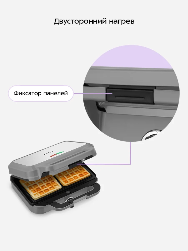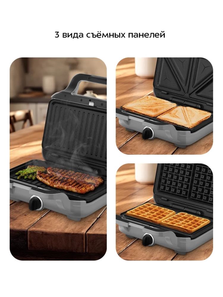Вафельница для бельгийских вафель КТ-5605 от kitfort — это многофункциональный электрический прибор, который станет незаменимым помощником на вашей кухне. Эта электровафельница позволяет готовить не только вкусные вафли, но и разнообразные бутерброды в бутерброднице, панини и сэндвичи в сендвичнице. Благодаря трем парам съемных панелей и насадок вы сможете легко переключаться между режимами приготовления: панели для вафель, бутербродов и гриля обеспечат вам множество кулинарных возможностей. Электрический гаджет оснащен антипригарным покрытием на панелях, что позволяет готовить с минимальным количеством масла и облегчает процесс чистки. Высокая температура нагрева способствует быстрому приготовлению блюд. Вафельница, она же сэндвичница, работает при напряжении 220–240 В и имеет мощность 900 Вт. Конструкция техники предусматривает приготовление пищи с закрытой крышкой — продукты находятся между двумя нагреваемыми поверхностями, что ускоряет процесс готовки без необходимости переворачивания еды. Зажим на ручке удерживает крышку в закрытом состоянии для удобства транспортировки и хранения. Бытовой электро прибор оснащен индикаторами питания и нагрева, а также термостатом для регулировки температуры. Термопредохранитель защищает устройство от перегрева: в случае превышения допустимой температуры электроцепь разрывается автоматически. Длина шнура составляет 0,7 м, а размеры устройства — 275 × 265 × 112 мм. Размеры панели составляют 268 × 151 мм. Этот кухонный гаджет идеально подходит как для дома, так и для профессиональной кухни.