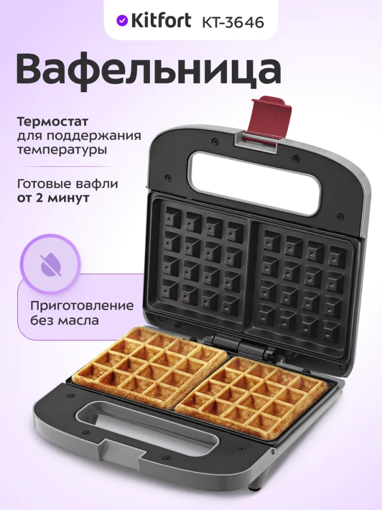 Эта электрическая вафельница предназначена для приготовления классических бельгийских вафель. Вафельницы Kitfort обеспечивают равномерное пропекание теста, благодаря чему вафли приобретают аппетитный золотистый цвет и ароматный вкус. Электрическая вафельница Kitfort — это мастерица в приготовлении вафель, которая легко справляется с задачей создания идеальных вафельных десертов.