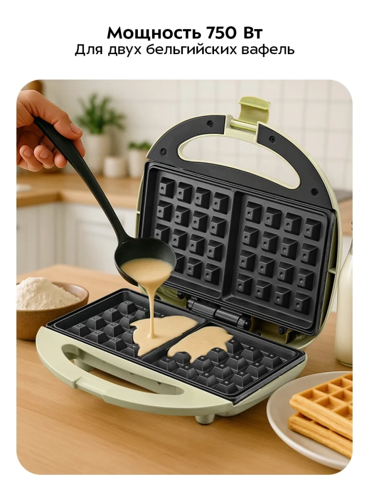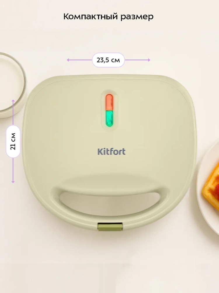 Электрическая вафельница Kitfort КТ-3648 — это идеальное решение для любителей бельгийских вафель. С её помощью вы сможете приготовить две аппетитные вафли одновременно, что значительно экономит время. Антипригарное покрытие панелей предотвращает прилипание теста, позволяя готовить с минимальным количеством масла и облегчая процесс чистки после использования. Вафельница оснащена индикаторами питания и нагрева, а также термостатом для поддержания оптимальной температуры панелей во время приготовления. Для удобства хранения и транспортировки прибор снабжен фиксатором крышки, который надежно удерживает её в закрытом состоянии. Работает устройство от сети с напряжением 220–240 В и частотой 50/60 Гц, потребляя мощность в 750 Вт. Это делает его безопасным в использовании благодаря классу защиты I от поражения электрическим током. Компактные размеры устройства (210 х 235 х 77 мм) позволяют легко разместить его на кухне или хранить в шкафу без лишних хлопот. Длина шнура составляет 0,7 м, что обеспечивает достаточную свободу при подключении к розетке. Размеры панели (216 х 120 мм) идеально подходят для выпекания классических венских вафель. Эта электро вафельница станет незаменимой техникой для дома и кухни каждого ценителя вкусных десертов. Она не только функциональна, но и проста в использовании благодаря интуитивно понятному управлению. Вафельница Kitfort — это техника высокого качества по доступной цене! Подходит как для ежедневного использования на кухне, так и для особых случаев.