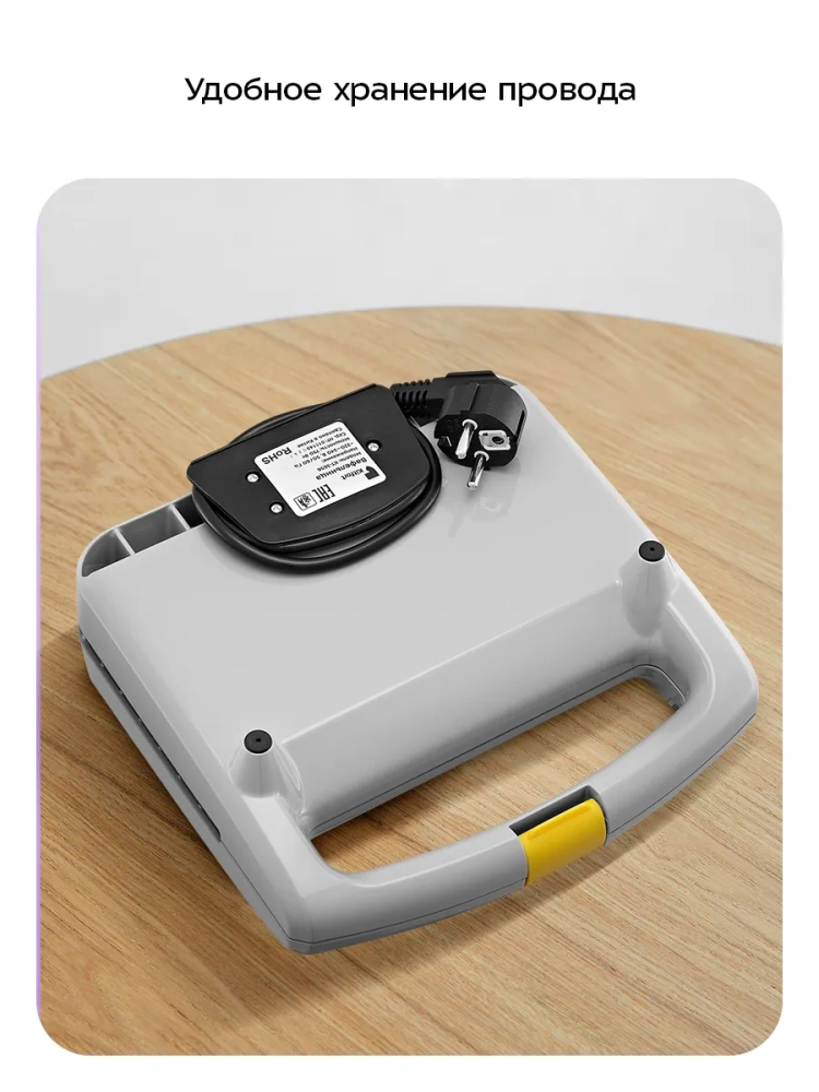 Антипригарное покрытие панелей вафельницы не дает тесту прилипнуть в процессе приготовления и позволяет готовить с минимальным количеством масла. Также антипригарное покрытие облегчает чистку панелей. Вафельница оснащена индикаторами питания и нагрева, а также термостатом для поддержания температуры панелей.