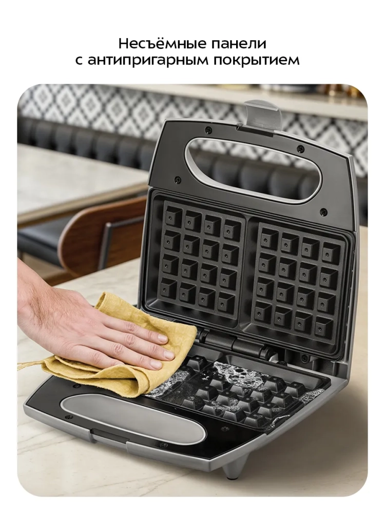 Электровафельница Kitfort оснащена антипригарными панелями, которые обеспечивают легкое извлечение готовых вафель и простоту в уходе. Вафельница электрическая Kitfort — это не только инструмент для приготовления вафель, но и возможность создавать кулинарные шедевры. Вафельницы Kitfort позволяют готовить вафли различной степени прожарки, что удовлетворит вкусы даже самых требовательных гурманов.
