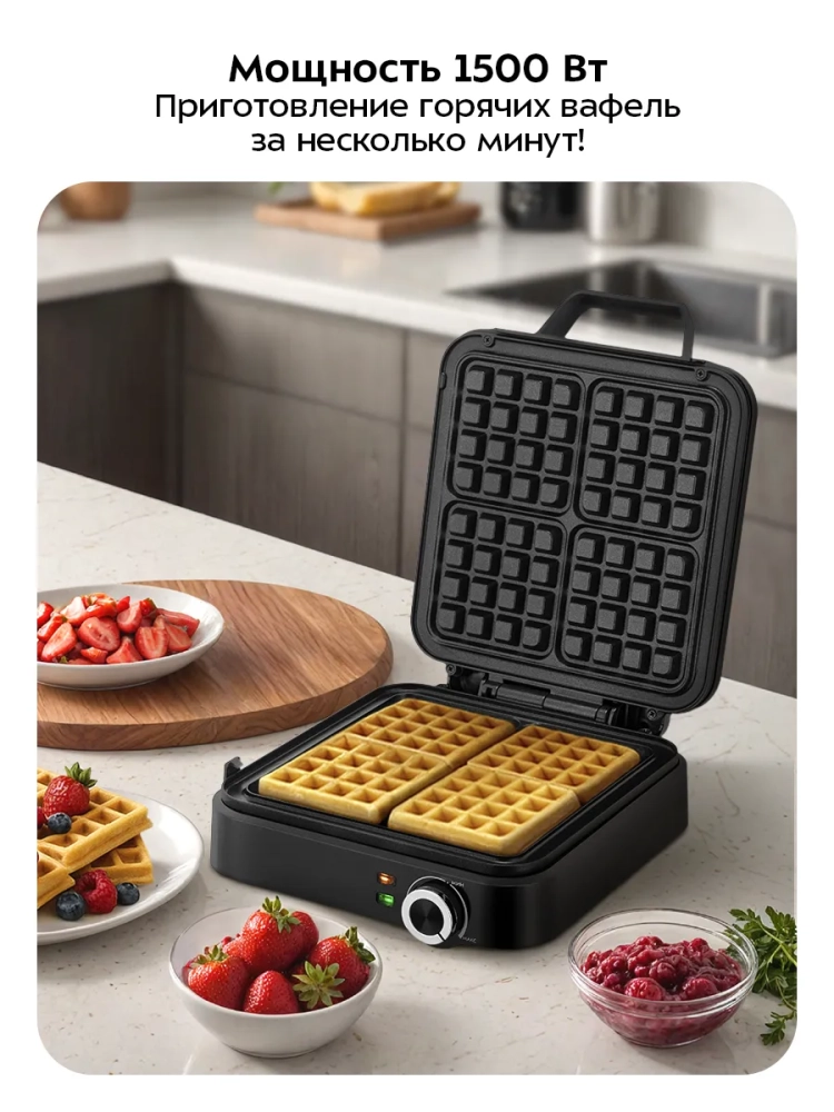 Купить электрическую вафельницу Kitfort — значит обеспечить себя и своих близких вкусными и ароматными вафлями на любой завтрак. Эта электровафельница станет незаменимым помощником на вашей кухне, позволяя приготавливать вафли, которые будут хрустеть и радовать своим аппетитным видом. Вафельницы Kitfort — это выбор тех, кто ценит качество и удобство в использовании.