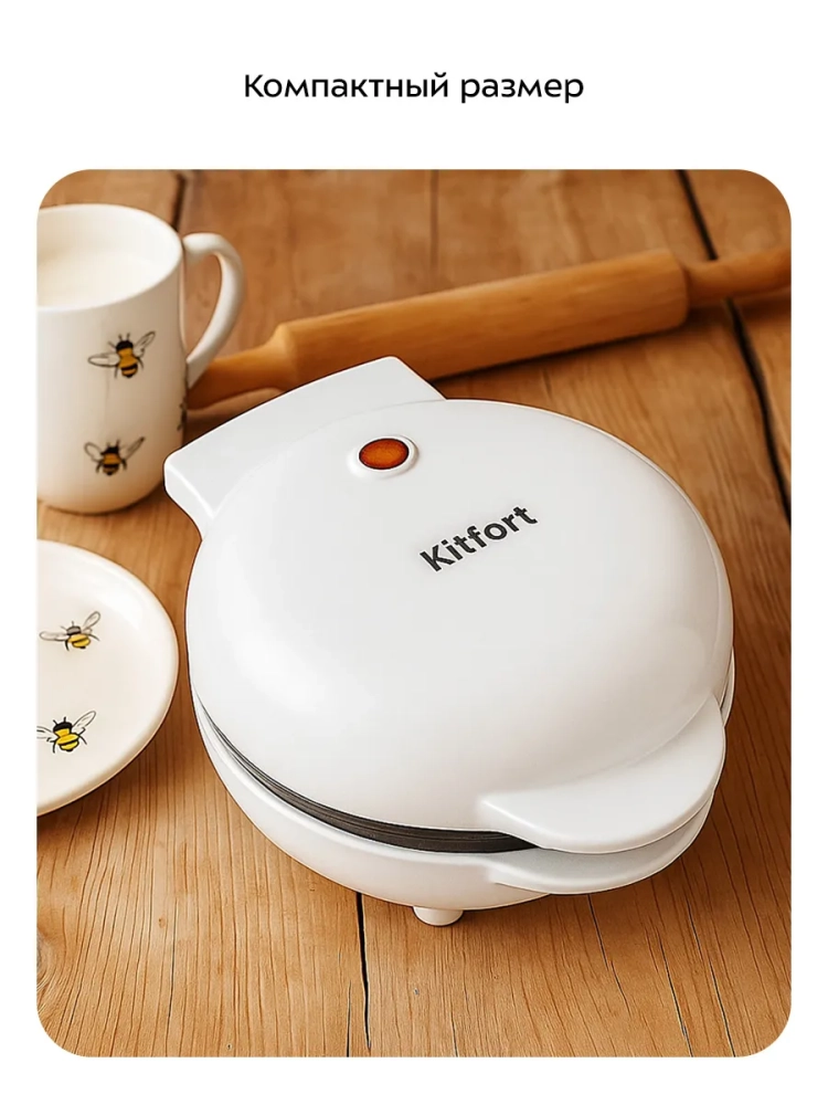 С помощью электрической вафельницы Kitfort КТ-4630 вы сможете печь маленькие пончики. Прибор рассчитан на приготовление трех пончиков за раз. Их можно подавать в качестве десертов с мороженным, шоколадной пастой, джемом и фруктами или добавляя начинку в сами пончики.