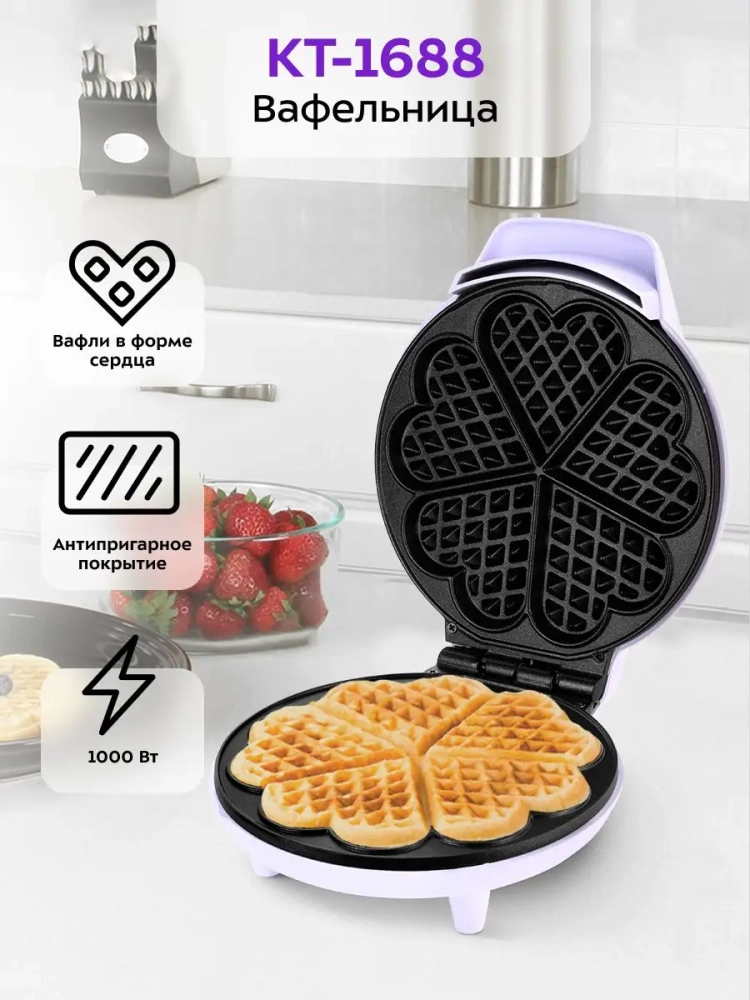 Электроприборы Kitfort, такие как эта вафельница, обеспечивают высокую производительность и долговечность. Кухонная техника Kitfort — это выбор тех, кто ценит качество и комфорт. Вафельница Kitfort КТ-1688 станет отличным дополнением к вашей коллекции кухонных приборов, обеспечивая вас вкусными и ароматными вафлями каждый день.