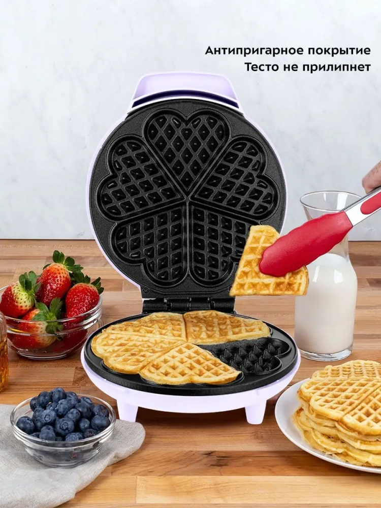 Электрическая вафельница Kitfort отличается антипригарным покрытием, что облегчает процесс приготовления и ухода за прибором. Внутренние поверхности вафельницы имеют специальное покрытие, предотвращающее прилипание теста. Рабочая форма вафельницы позволяет создавать вафли в форме сердечек, что добавит оригинальности вашему столу. Вафельница оснащена удобным держателем для проводов, что обеспечивает компактное хранение и порядок на кухне.