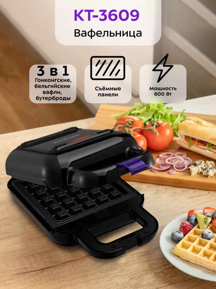 Вафельница электрическая для венских вафель КТ-3609 (3 в 1)