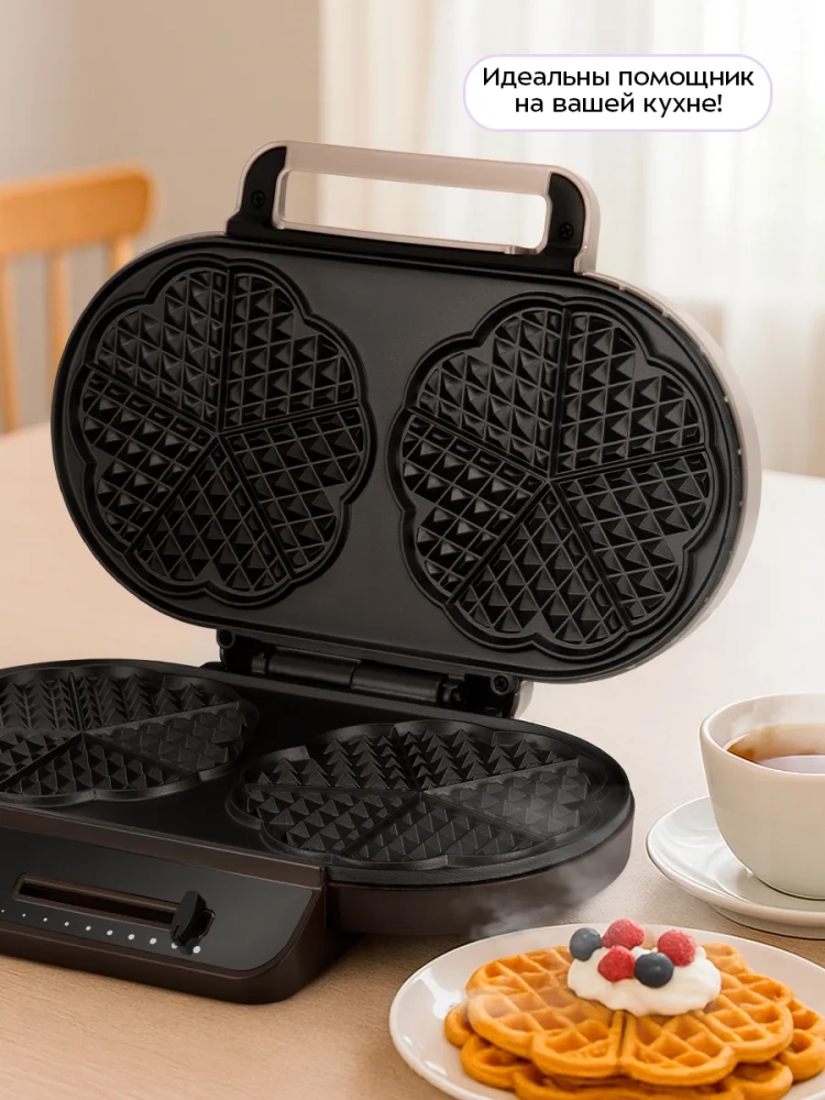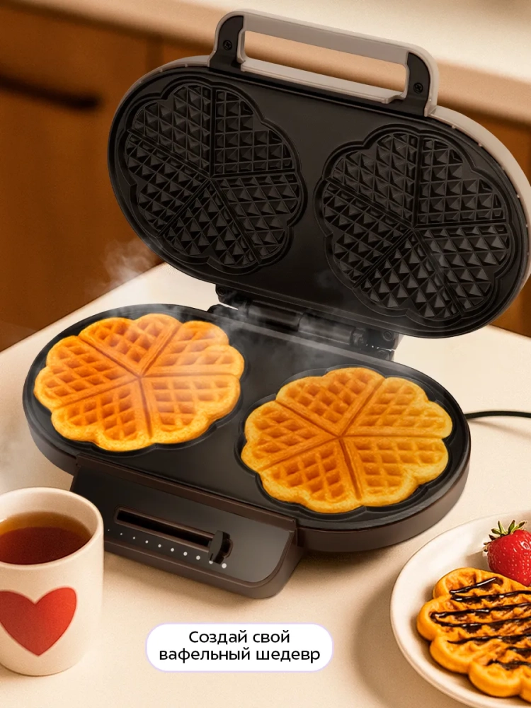 Эта маленькая вафельница станет отличным дополнением к вашей коллекции кухонных приборов. Она позволяет готовить вафли в форме сердца, что добавляет особую атмосферу в каждое чаепитие. Вафельница электрическая Kitfort — это надежный выбор для тех, кто ценит качество и функциональность.