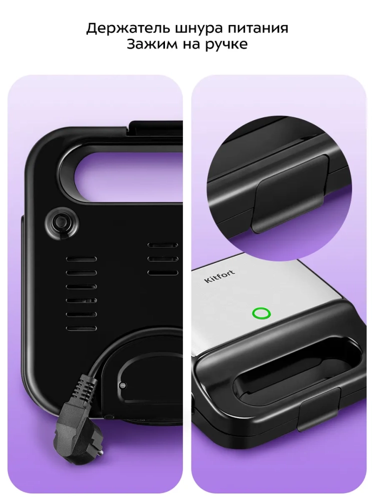 Электрическая вафельница Kitfort КТ-3699 — это универсальный кухонный прибор, который станет незаменимым помощником на вашей кухне. Она предназначена для приготовления разнообразных блюд, таких как бельгийские вафли, бутерброды, панини и даже гриль. Благодаря трем парам сменных панелей — для вафель, бутербродов и гриля — вы сможете легко менять режимы готовки в зависимости от ваших предпочтений. Эта электровафельница оснащена антипригарным покрытием на всех панелях, что позволяет готовить с минимальным количеством масла или вовсе без него. Это не только делает блюда более полезными, но и значительно упрощает процесс чистки устройства после использования. Съемные панели бутербродницы можно мыть под проточной водой. Вафельница работает при напряжении 220–240 В и имеет мощность 750 Вт. Она оборудована термостатом для поддержания оптимальной температуры нагрева панелей и индикаторами питания и нагрева для удобства использования. Зажим на ручке надежно фиксирует крышку в закрытом положении во время приготовления или хранения. Компактные размеры устройства (230 х 235 x 100 мм) позволяют легко разместить его даже на небольшой кухне. Длина шнура составляет 0,6 м, что обеспечивает достаточную свободу при размещении прибора в любом уголке кухни. Kitfort КТ-3699 не только функциональна как бытовой электроприбор для кухни; она также отличается стильным дизайном и простотой эксплуатации. Это идеальное решение для тех, кто ценит качество приготовленных блюд без лишних усилий.