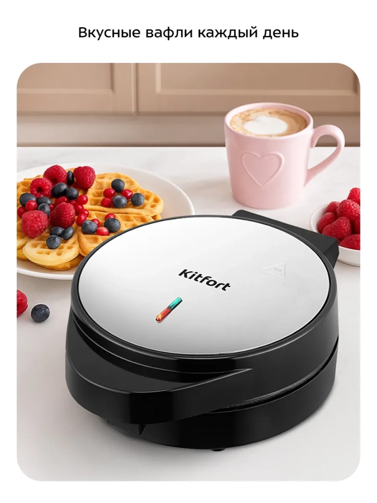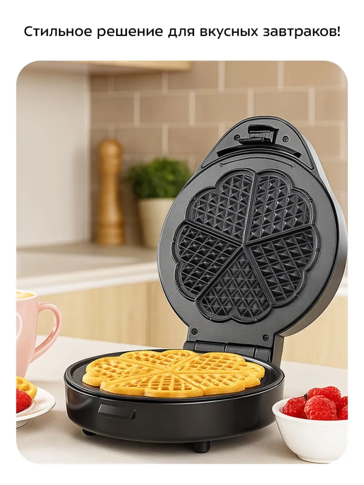 С помощью электрической вафельницы Kitfort КТ-5614 вы можете печь вафли в форме цветка, которые при желании можно разделить на пять маленьких вафель в форме сердечка. Вафельница рассчитана на приготовление одной вафли в форме цветка. Данная модель оснащена регулятором температуры, что позволит вам настраивать температуру приготовления вафель.