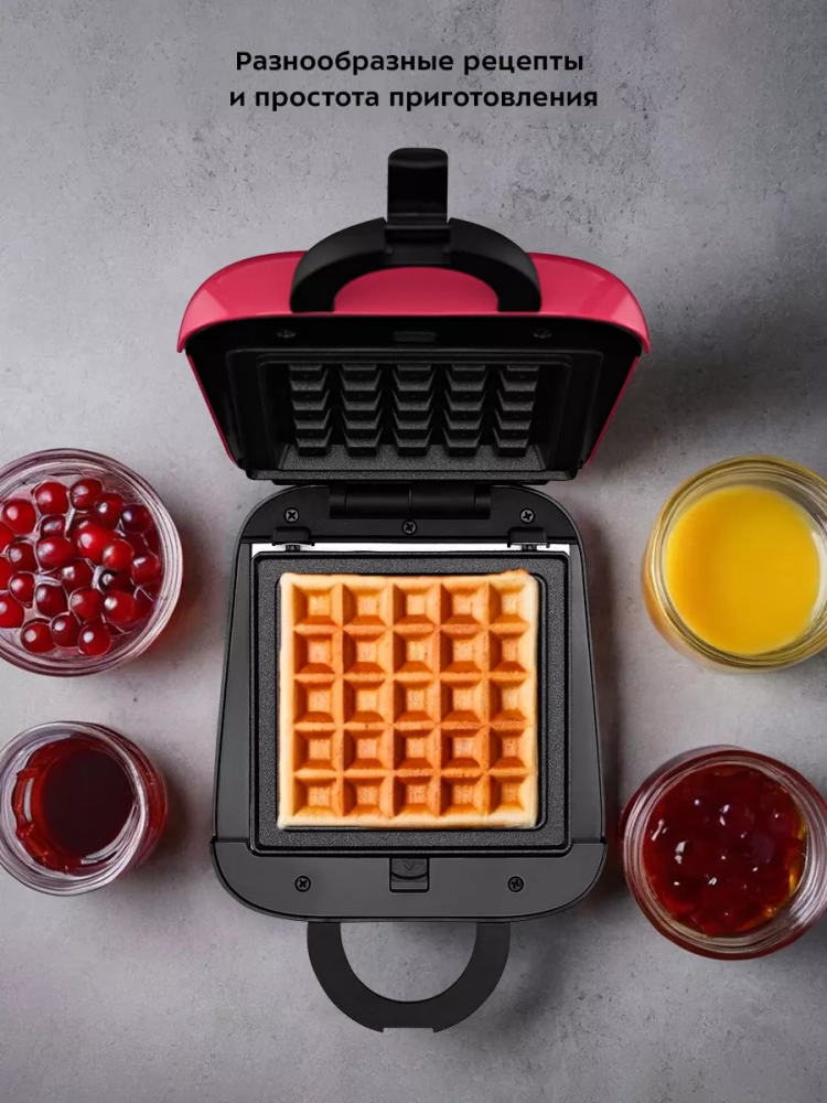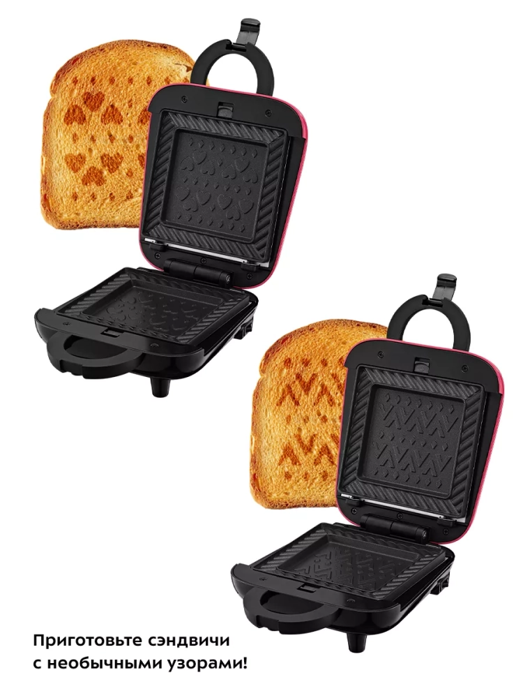 У прибора три вида панелей: пара панелей для приготовления вафель и две пары панелей для приготовления тостов с разными узорами. Высокая температура нагрева панелей способствует быстрому приготовлению продуктов. Для удобства ухода панели сделаны съемными — их можно мыть под проточной водой.