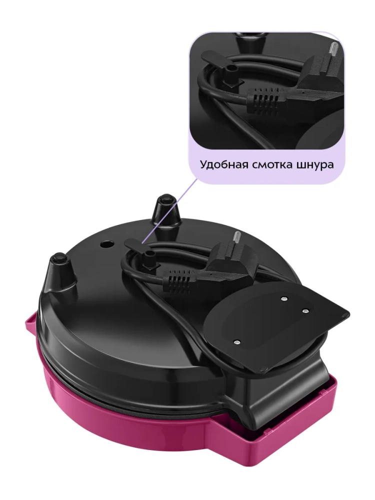 Противоскользящие ножки не дают прибору скользить по столу во время готовки. Корпус выполнен из пластика.