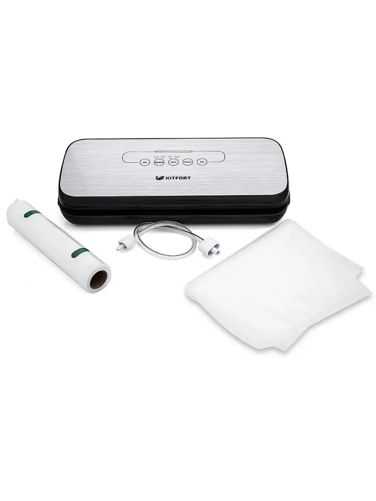 Вакууматор Kitfort КТ-1502 — современный прибор, призванный увеличить сроки хранения пищевых продуктов. На воздухе продукты обветриваются и окисляются из-за присутствующего в нем кислорода, быстро теряют свежий аромат и качество. Продукты, упакованные под вакуумом, сохраняют свежесть и не портятся существенно дольше по сравнению с обычными условиями хранения. Гораздо лучше хранятся овощи: меньше портятся, не сохнут, картошка и лук не прорастают. Зелень, упакованная в вакуумный контейнер, остается свежей и не вянет. Из мяса, рыбы и фарша, завакуумированных в пакеты, при хранении в морозильной камере не вымораживается влага, они не приобретают посторонних запахов.