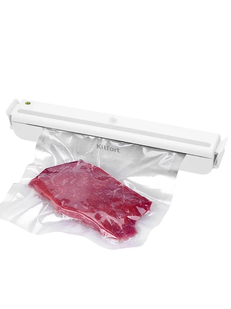 Вакууматор Kitfort КТ-1505 — устройство для вакуумной упаковки продуктов. Вакуумирование позволяет защитить от пыли, грязи, сохранить аромат и продлить сроки годности пищевых продуктов. Такой метод хранения уменьшает риск развития бактерий, которые появляются благодаря взаимодействию пищи с воздухом. Удаление воздуха из пакета гарантирует замедление процессов брожения, окисления и испарения, позволяя сохранить приятный внешний вид и качество самых разных продуктов питания.