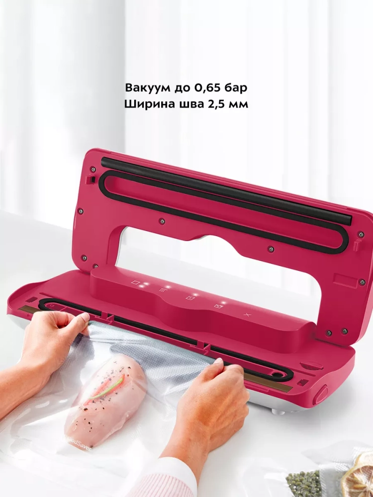 В вакууматоре отсутствует двигатель или мотор, поэтому вакууматор достаточно тихо создает вакуум в пакете.