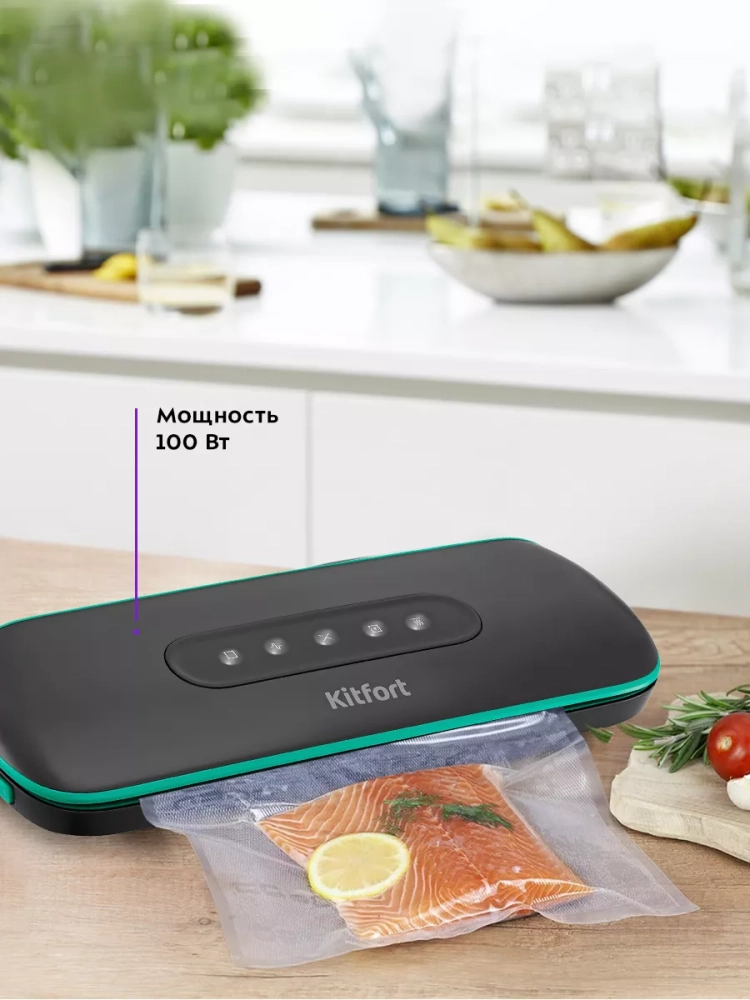 Вакууматор Kitfort КТ-1541 очень прост в использовании. Чтобы провести запаковку продукта, необходимо поместить его в специальный пакет, предназначенный для вакуумирования. Открытый край пакета укладывается в вакуумную камеру. После этого нужно закрыть крышку вакууматора и включить устройство. Вакууматор удалит из пакета воздух. В результате образования вакуума пакет плотно обжимает содержимое. Как только воздух удален, начинается запечатывание открытой стороны пакета. В результате воздух уже не сможет проникнуть внутрь.